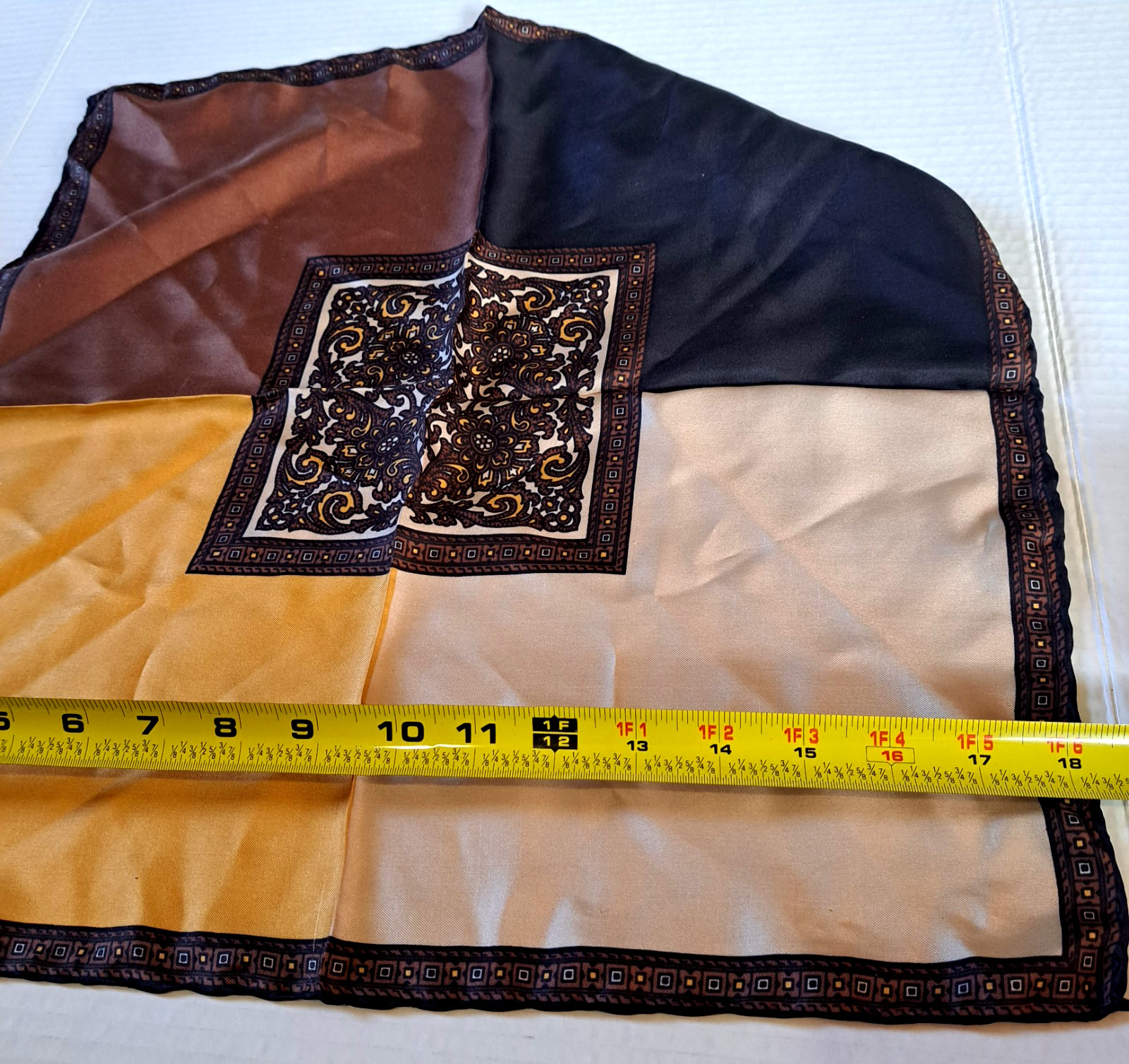 как выглядит VTG Pocket Square Scarf 100 Silk Paisley Trim Hand Rolled Italy 18 in фото