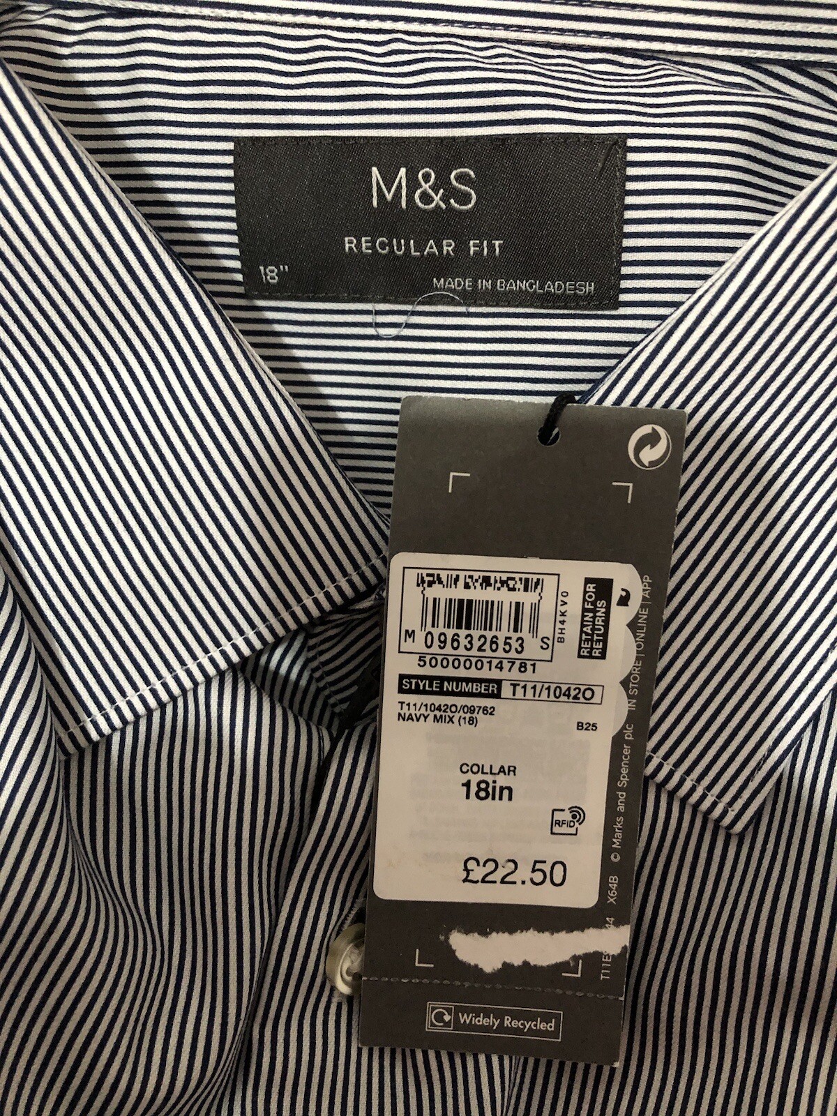 как выглядит Marks Spencer Regular Fit Pure Cotton Long Sleeve Shirt 18 46cm Navy Striped фото