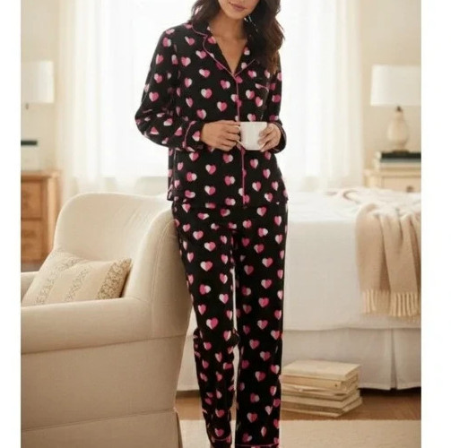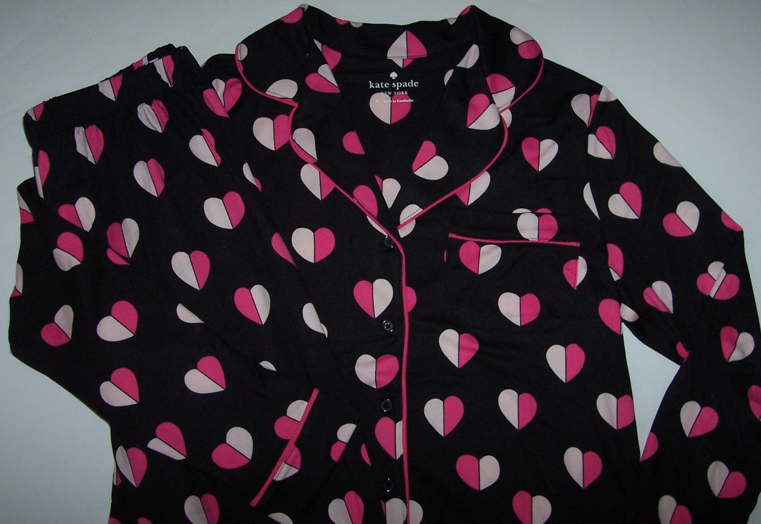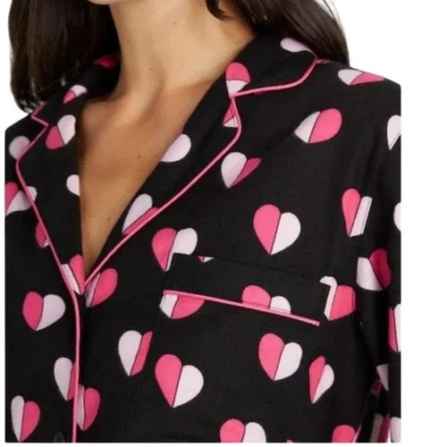 как выглядит NWT Kate Spade New York BLACK/PINK HEARTS Knit Pajama/Lounge Set Women
