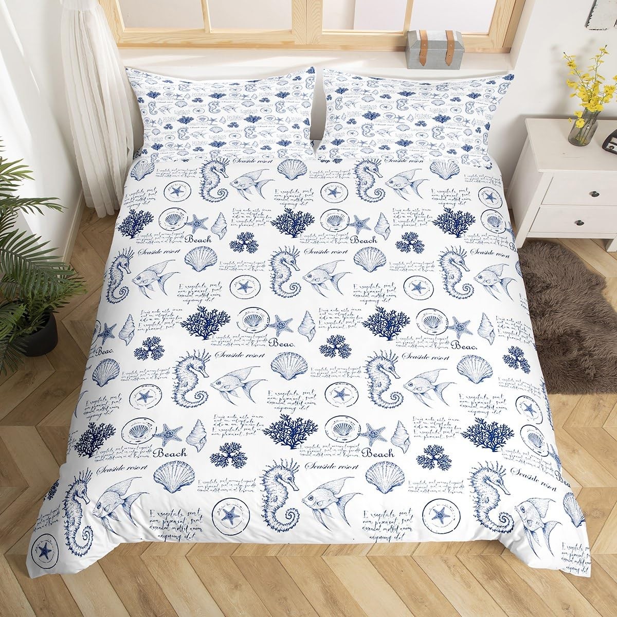 как выглядит Coastal Duvet Cover Set King Size,Seashell Conch Seahorse Starfish Coral Bedd... фото