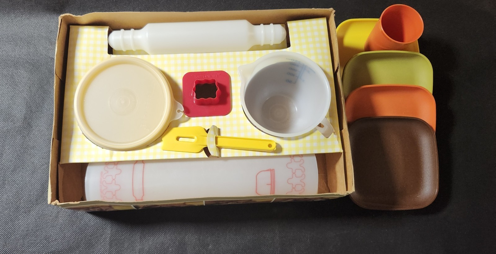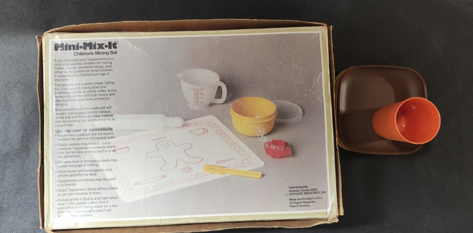 Vintage 1979 Tupperware Toys Mini Mix It Children's Mixing Set with Box BONUS