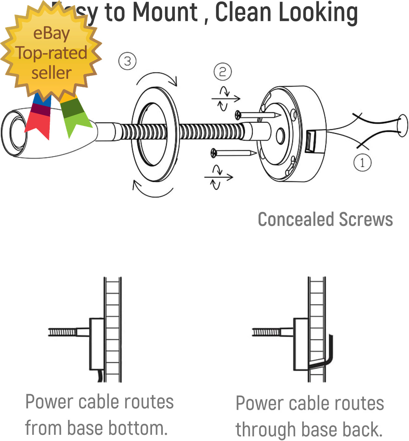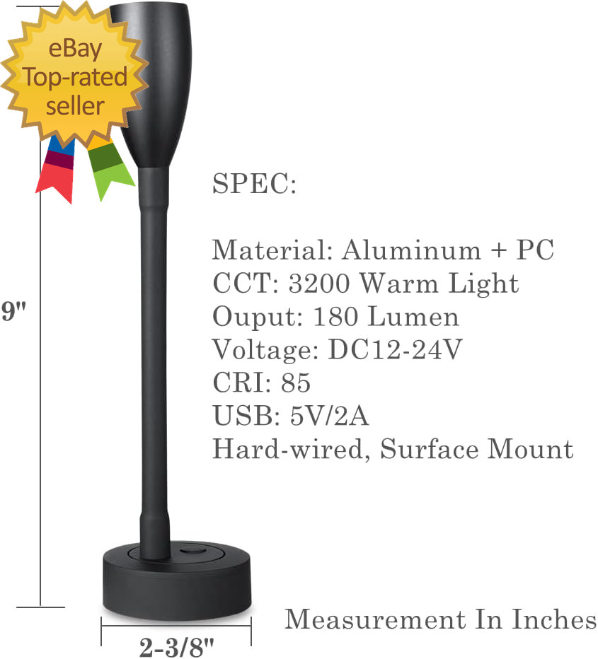Особенности: DC12-24V, Dimmable, Flexible neck, Hard-wired, USB Charger