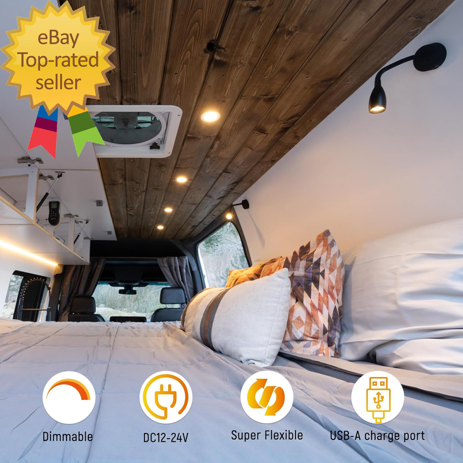 12V LED Dimmable Reading Light 2 Pack RV Bedside Reading Lamp with USB