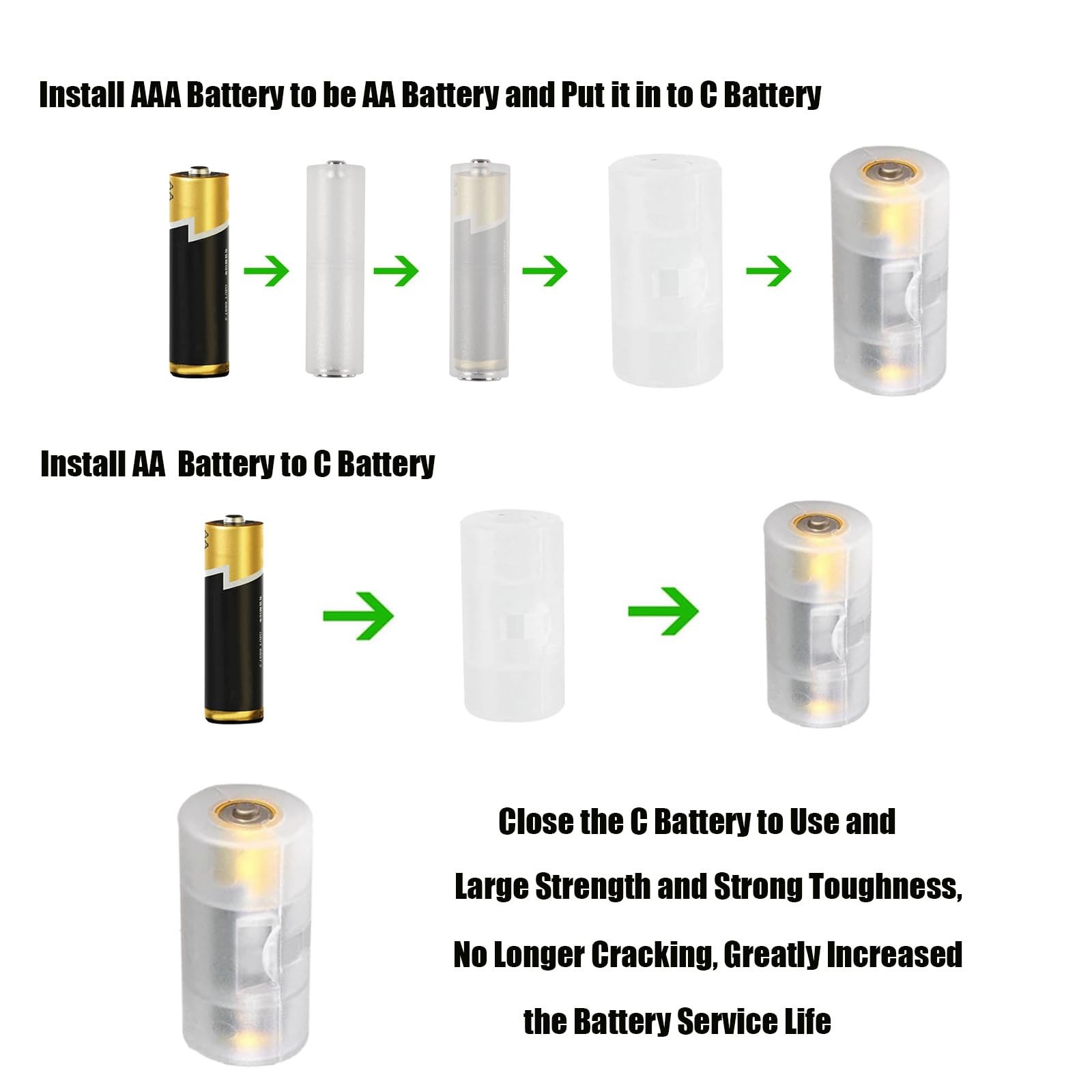 10pcs AA to C Size Battery Adapter Converter AA to Size C Battery Adapters Ca...