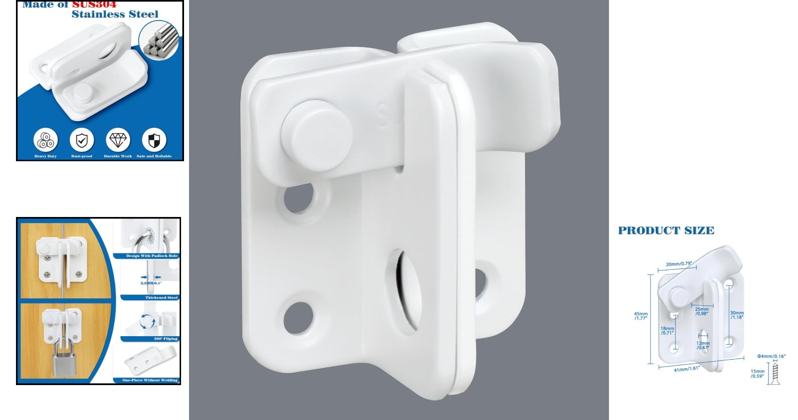 как выглядит Heavy Duty Stainless Steel Flip Latch - Matte White Door Lock for Security фото