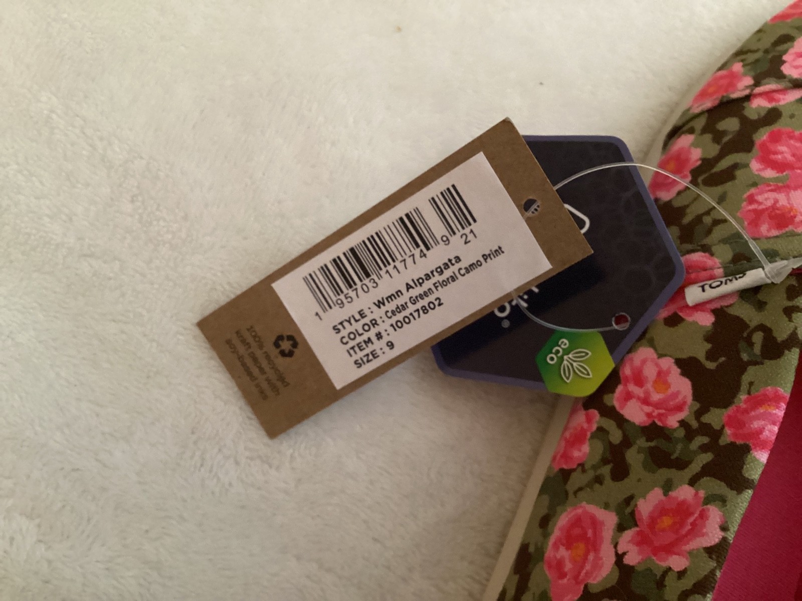 как выглядит TOMS ALPARGATA SHOES CEDAR GREEN FLORAL CAMO PRINT SLIP ON FLATS SZ 9 NWTS фото