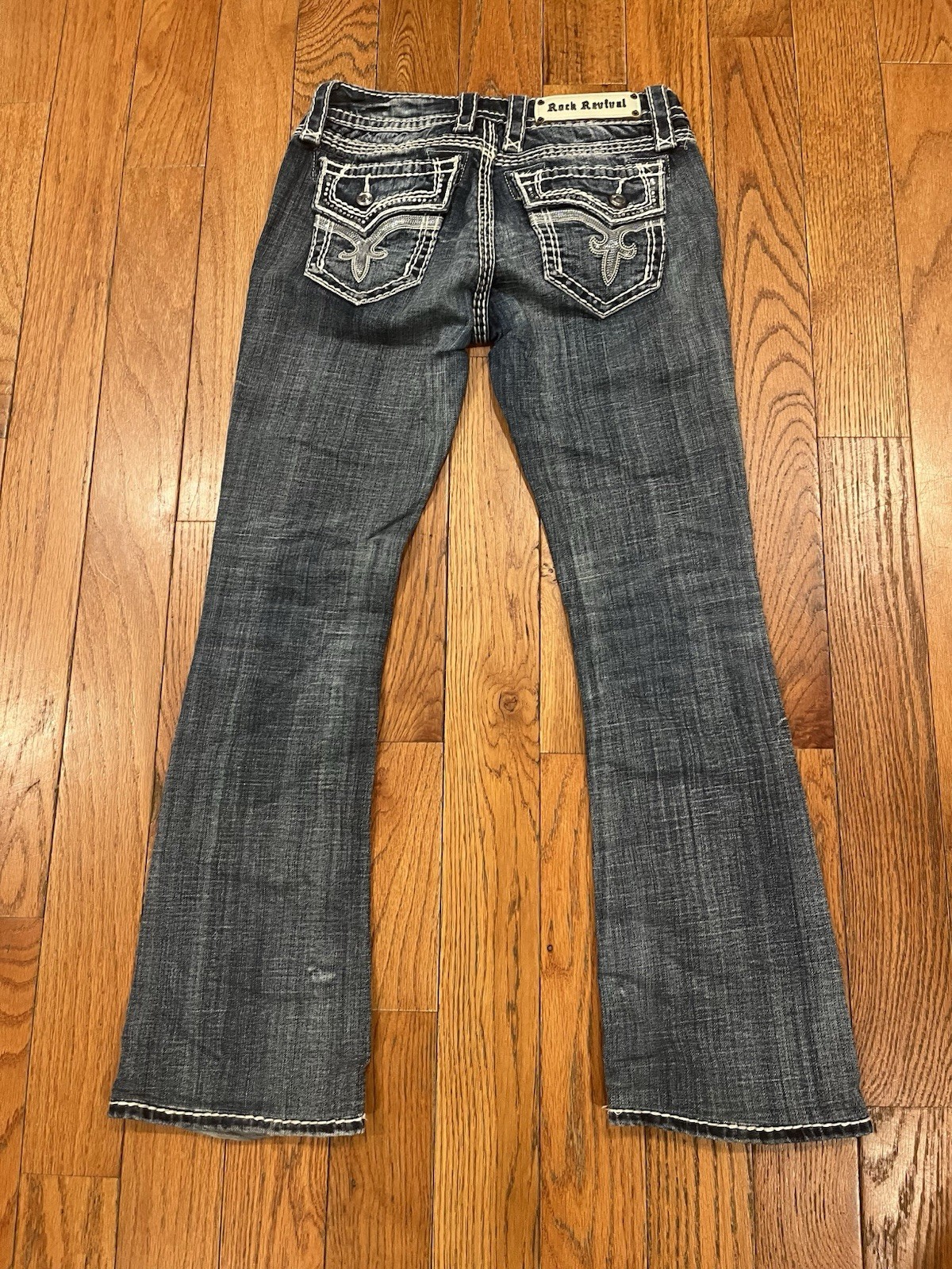Rock Revival Jeans Blue Kai Boot Distressed Embellished Buckle Denim Womens 26