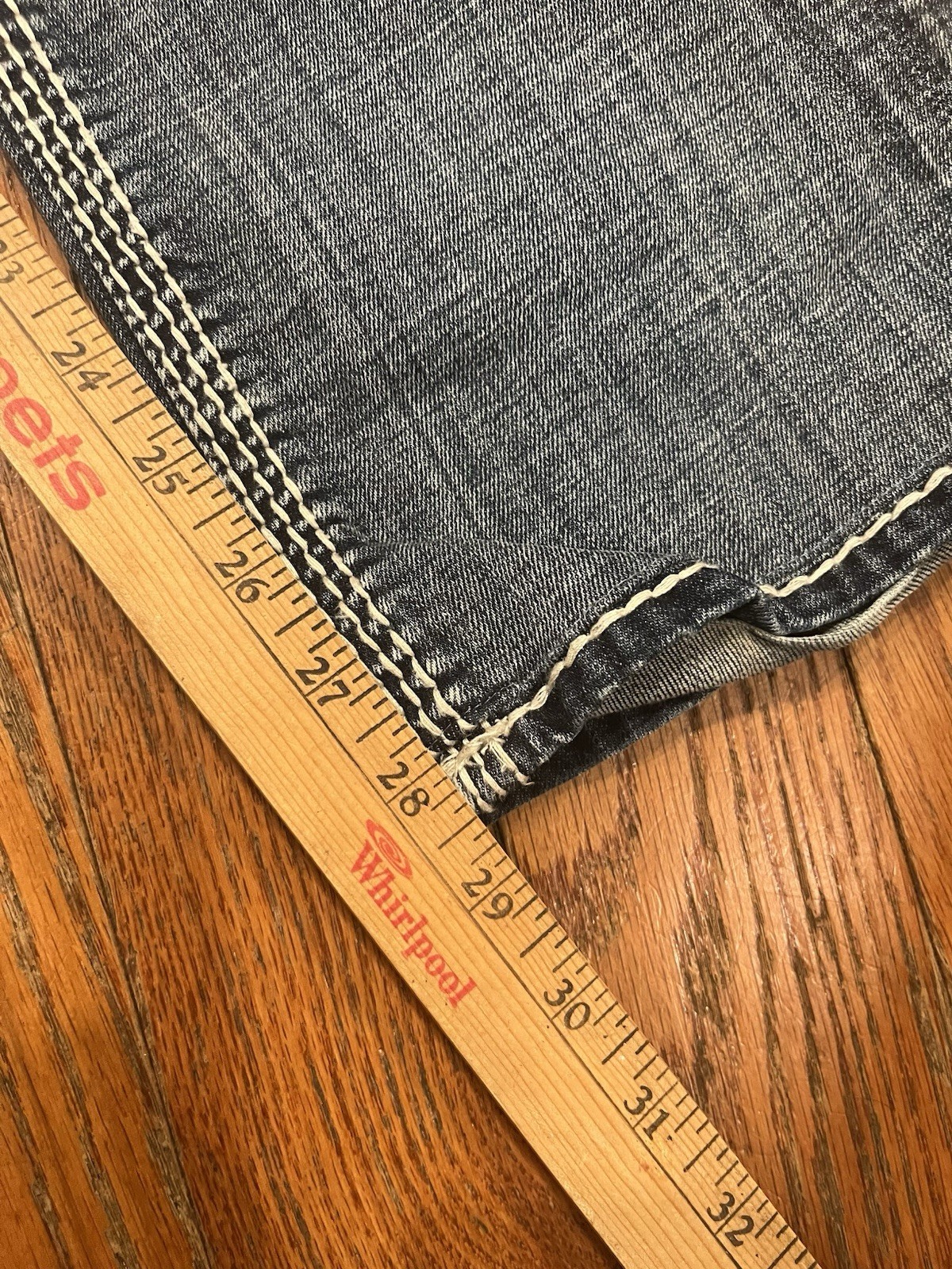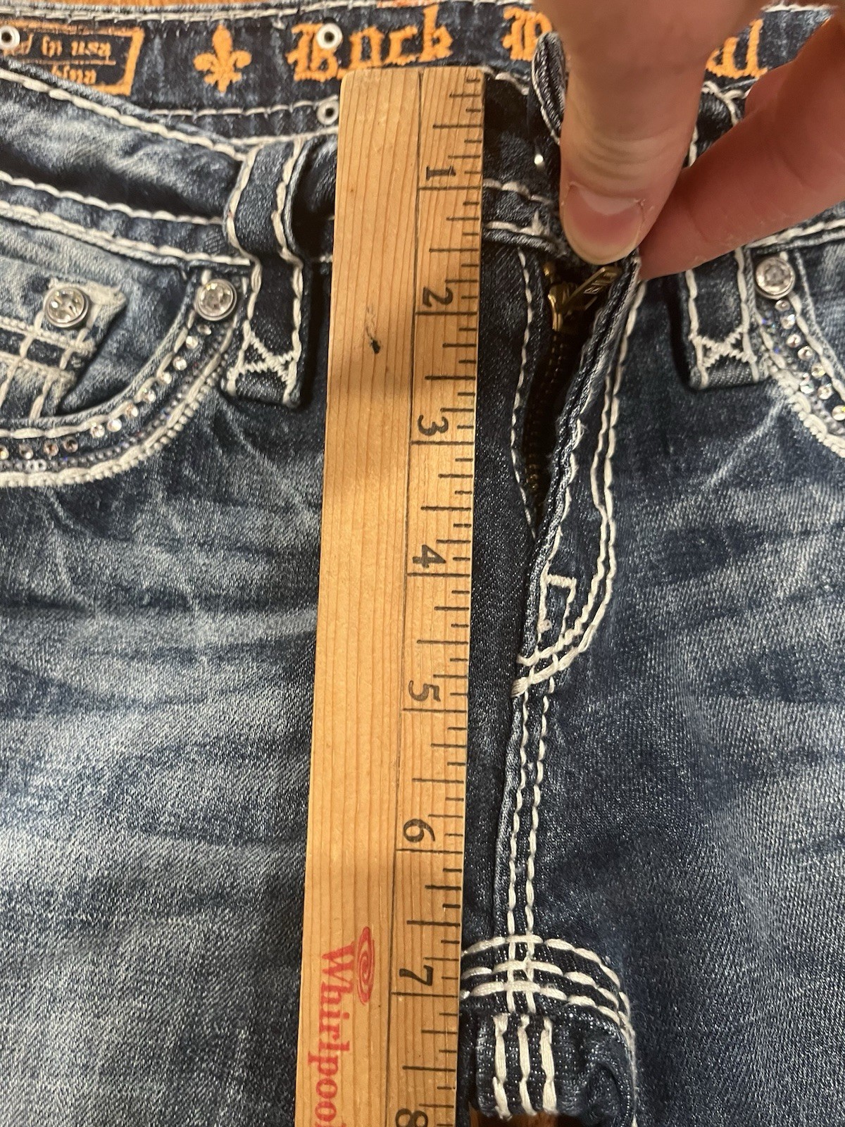 как выглядит Rock Revival Jeans Blue Kai Boot Distressed Embellished Buckle Denim Womens 26 фото