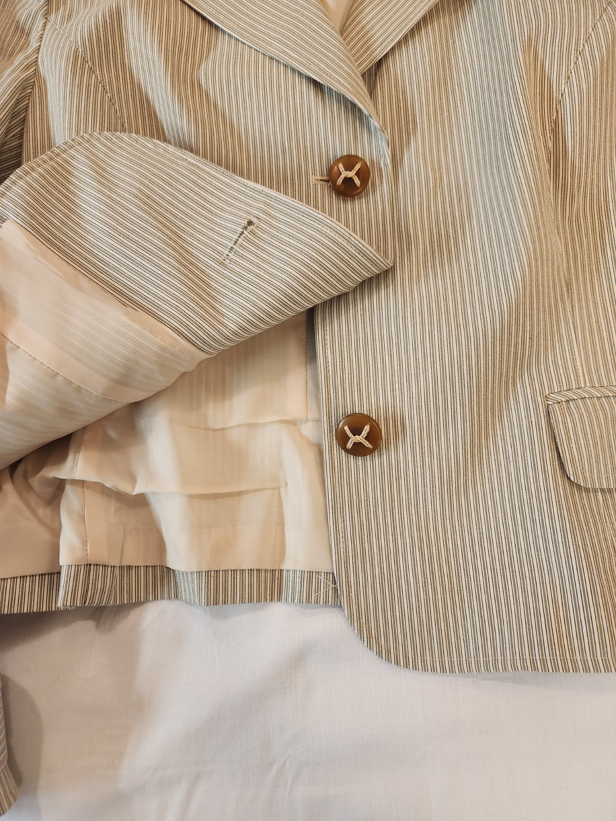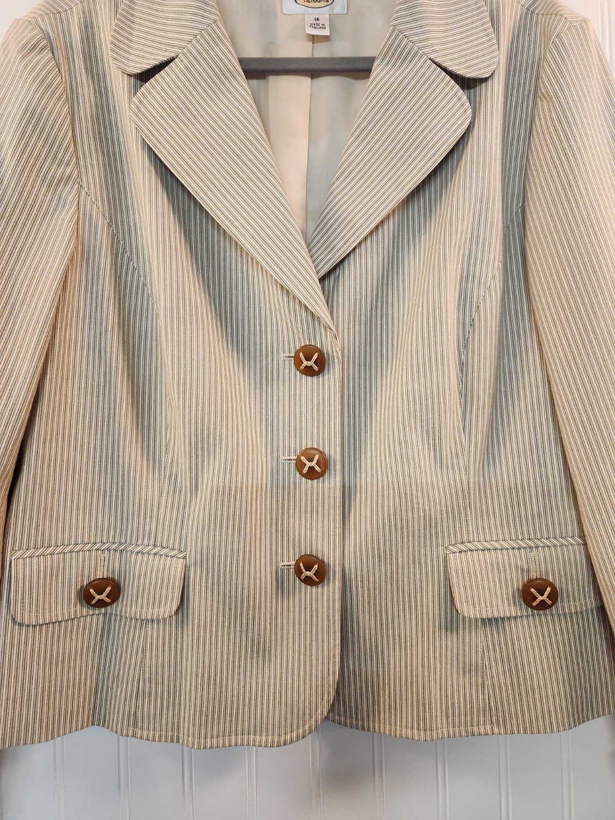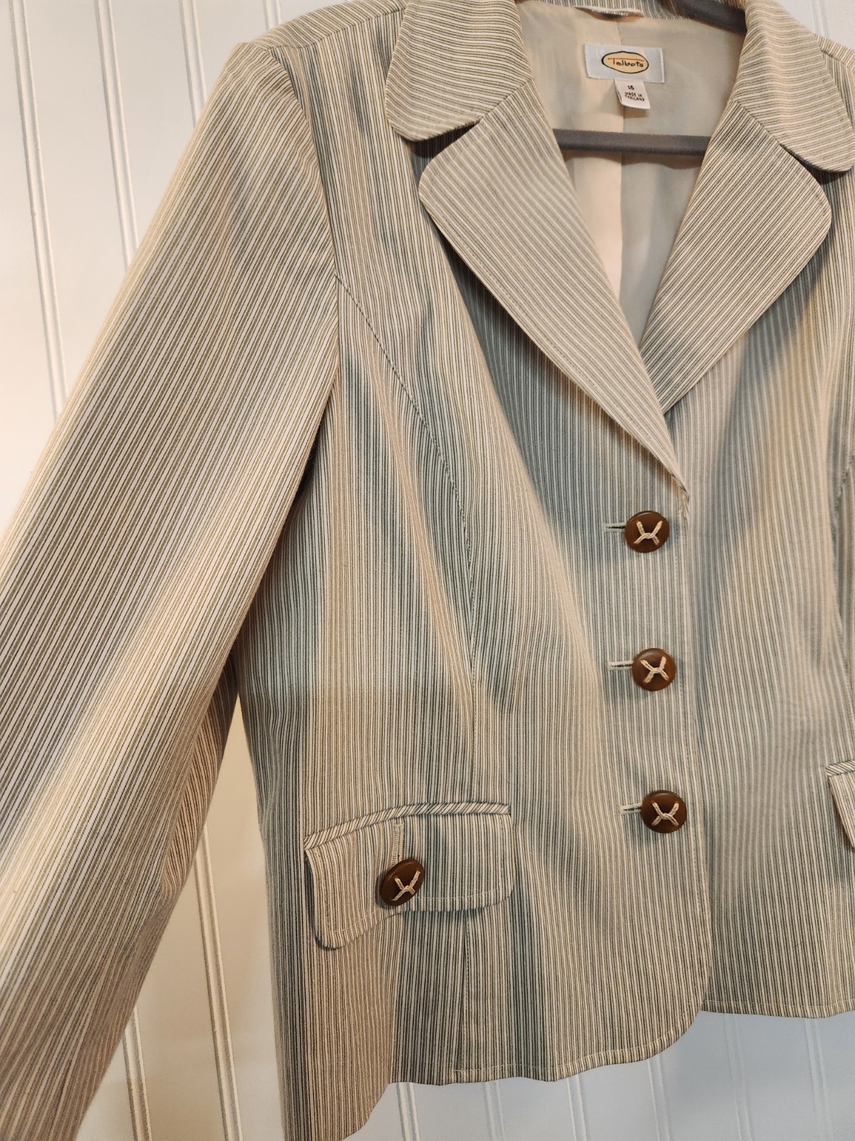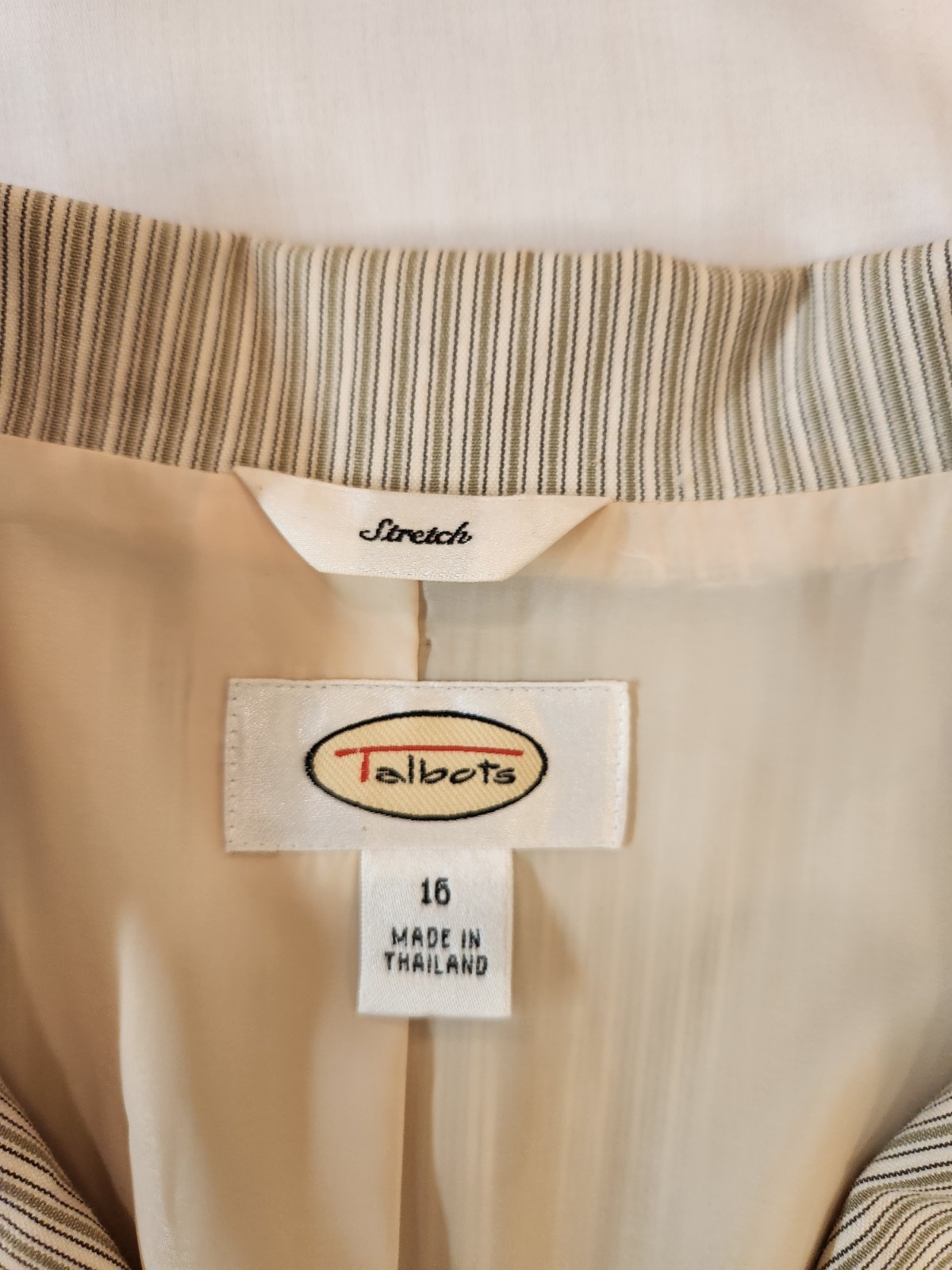 NEW Vintage Talbots Women's Tan Stripe Oversized Button Blazer Size 16 Classic