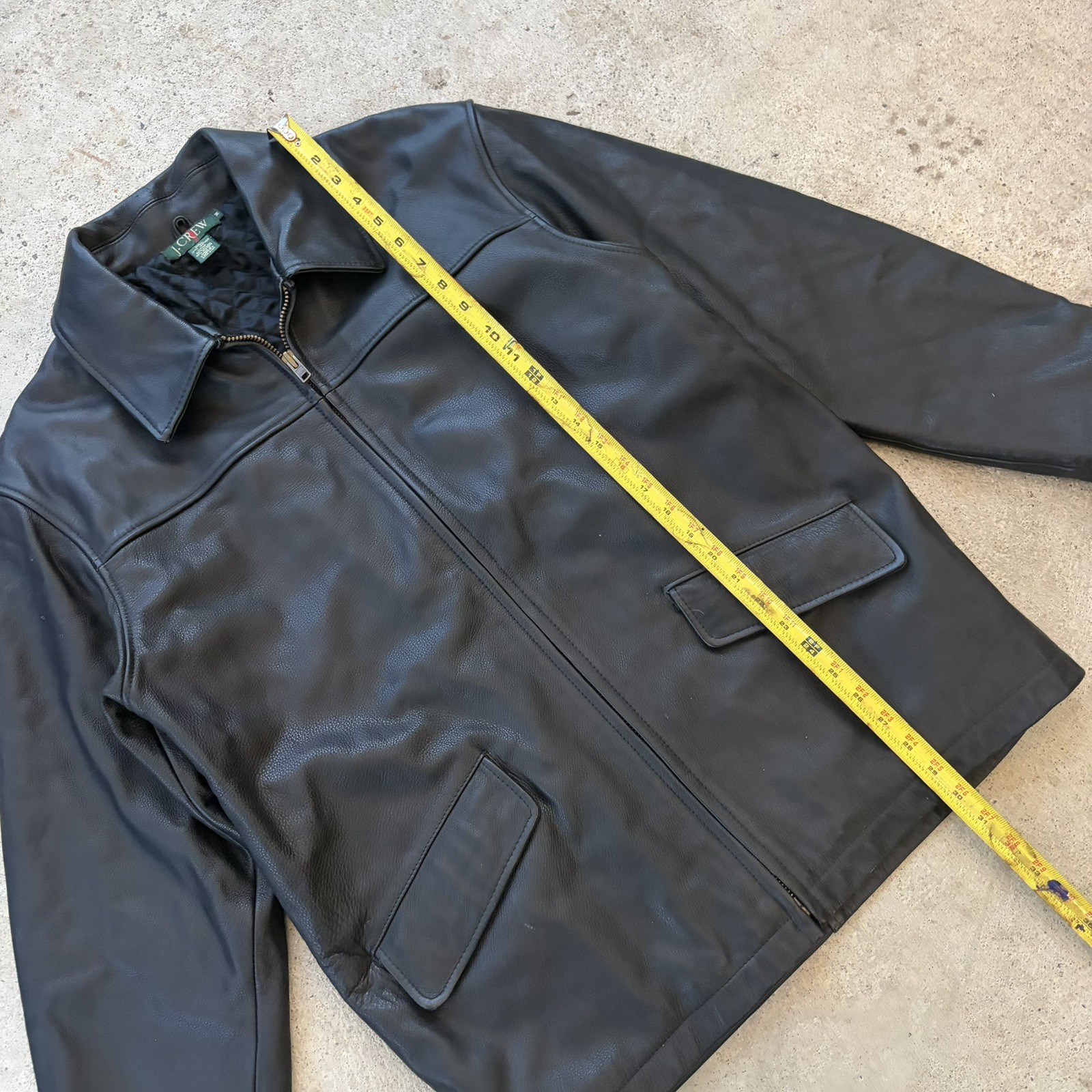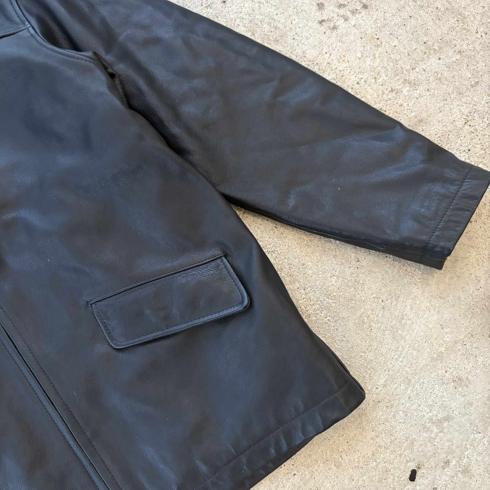 как выглядит VTG 90s J. Crew Mens Black Leather Quilted Zip Front Jacket- Size medium фото