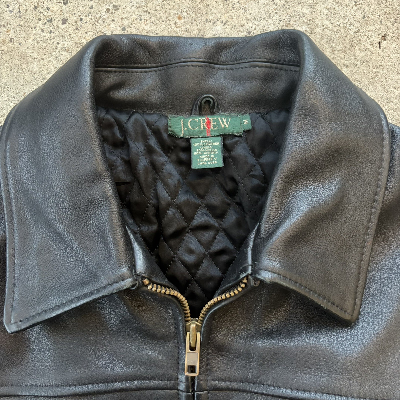 VTG 90s J. Crew Men's Black Leather Quilted Zip Front Jacket- Size medium