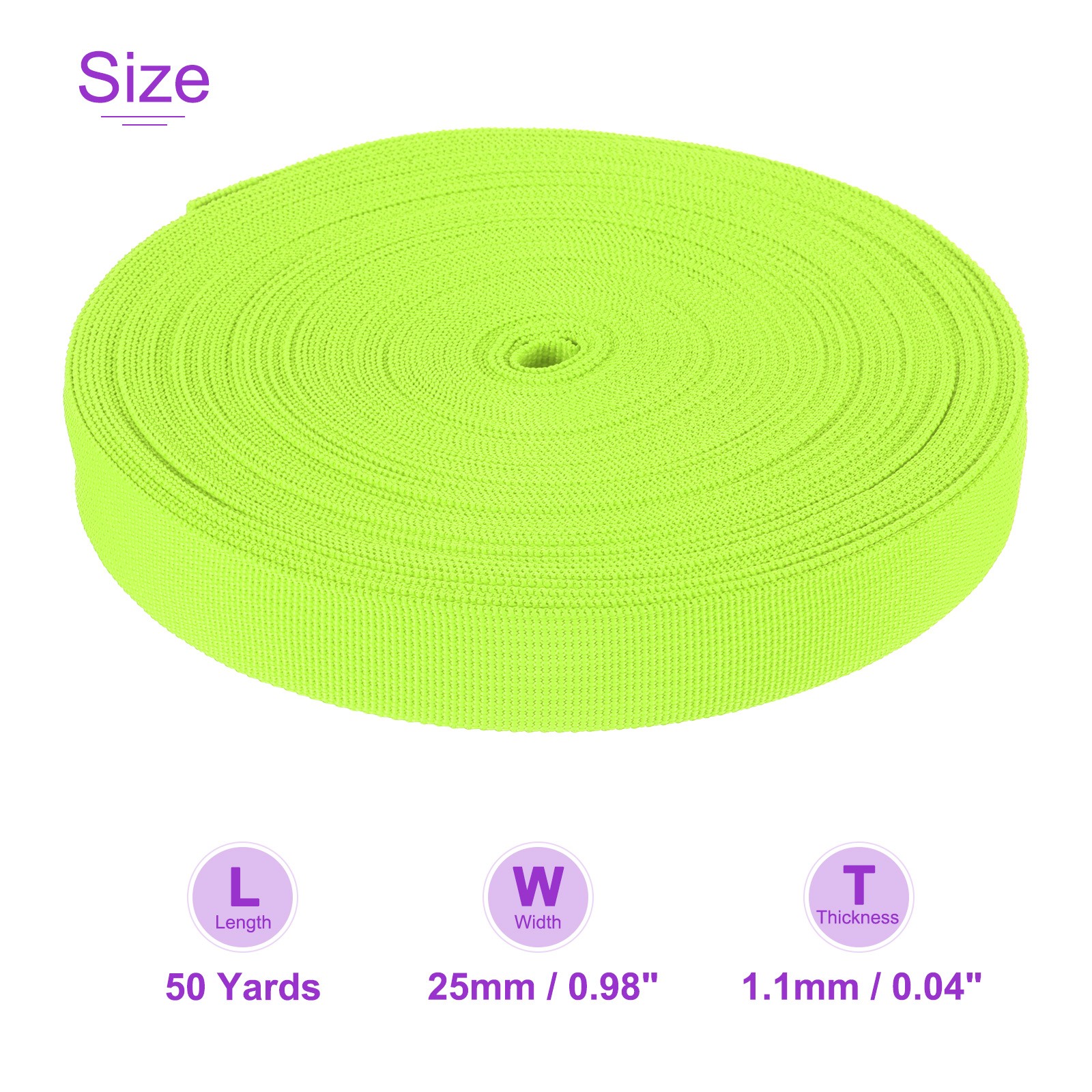 50Yard x 1 Width Nylon Webbing Strap Poly Webbing Strapping Fluorescent Green