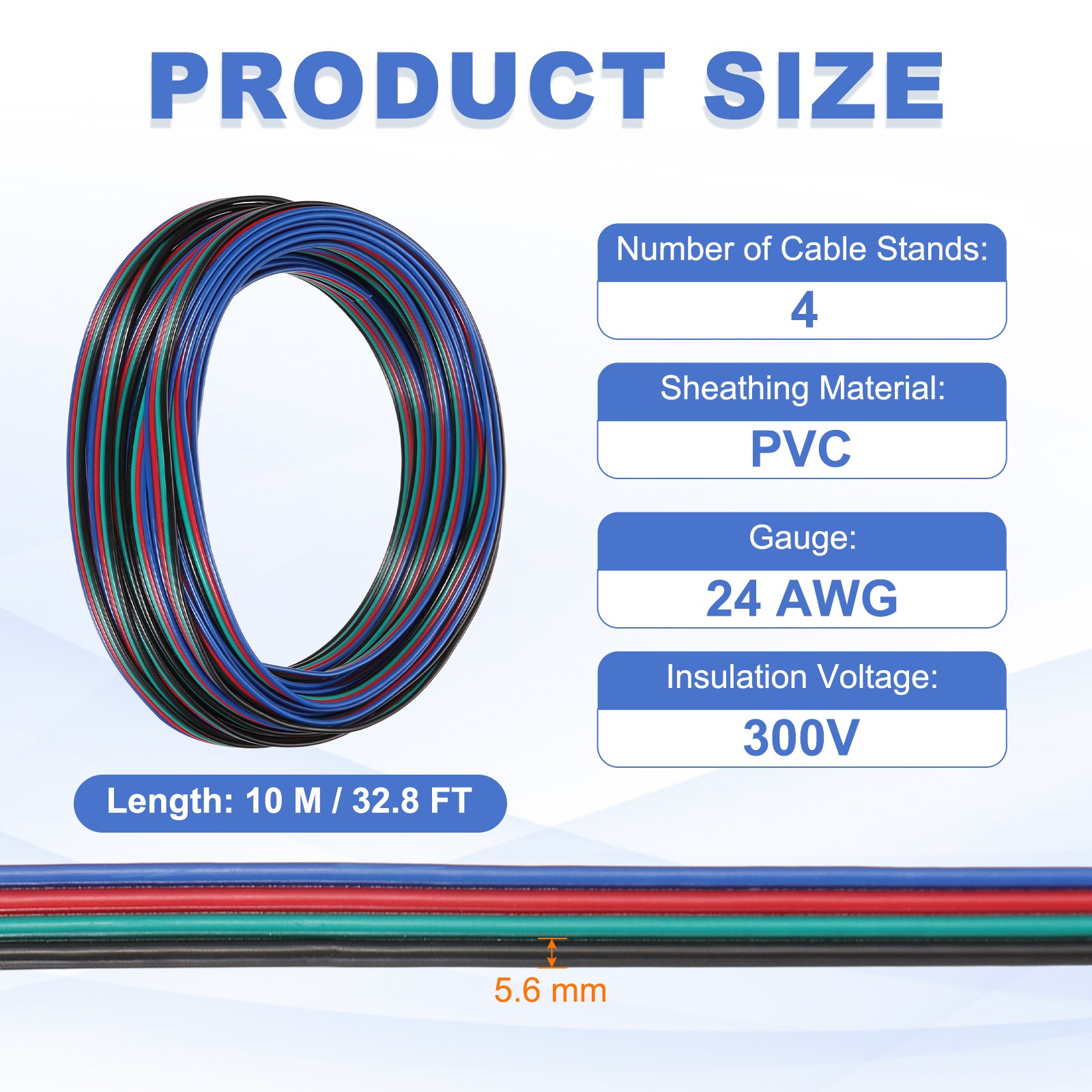 32.8ft 24 Gauge 4 Conductor Electrical Wire Tinned Copper Cable