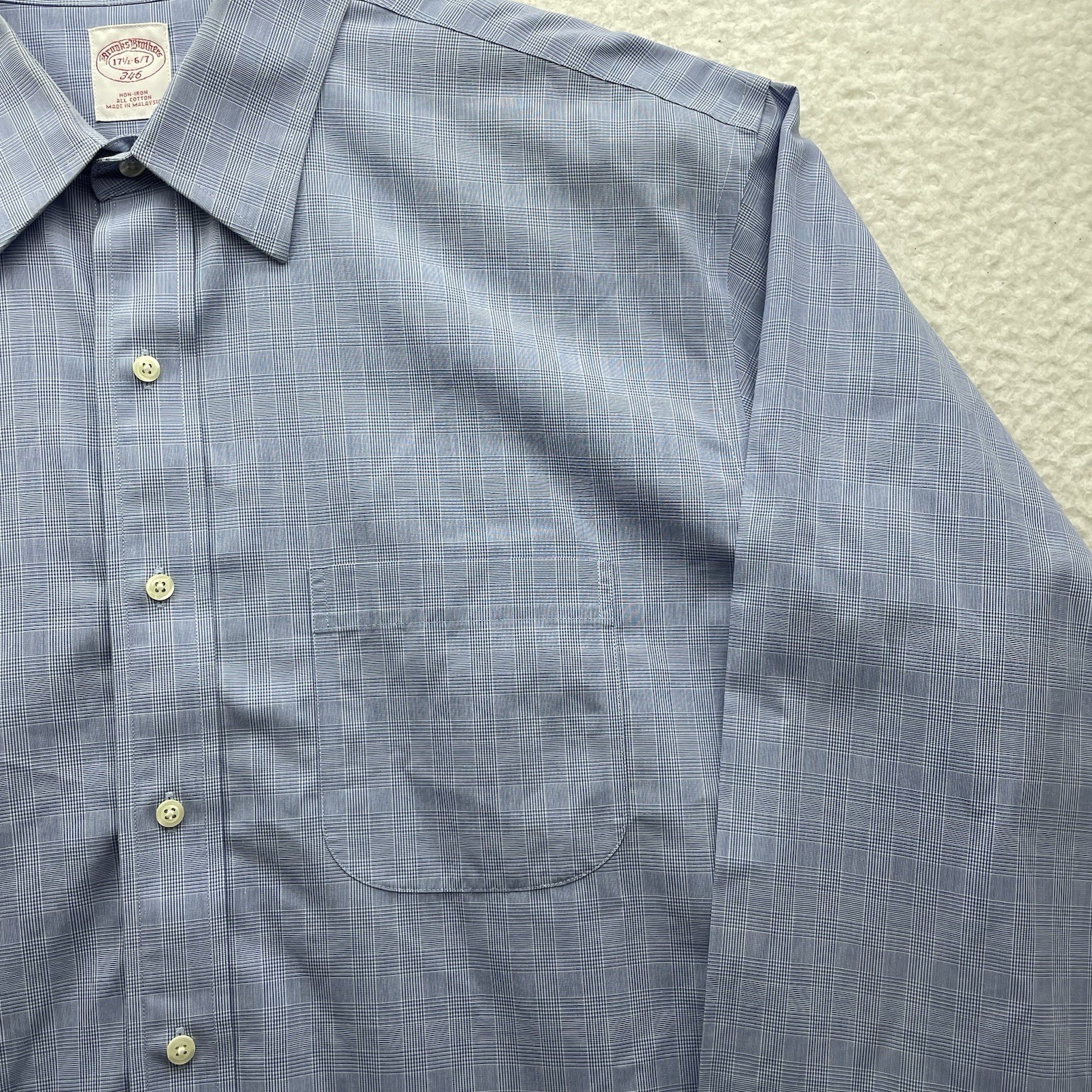 как выглядит Brooks Brothers Dress Shirt Mens 17.5 6/7 Blue Glen Plaid Button Down 346 Preppy фото