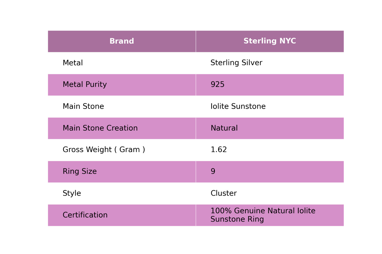 Certification: 100% Genuine Natural Iolite Sunstone Ring