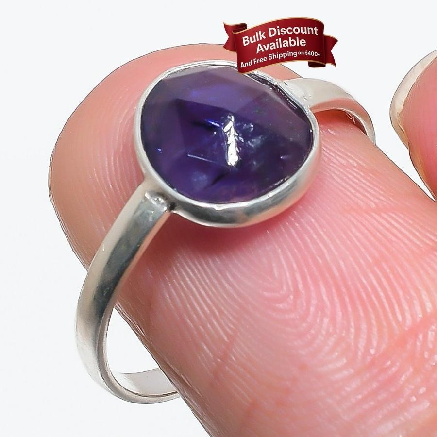как выглядит Iolite Sunstone Stone Solid Silver Cluster Trendy Wife Valentines Ring Size 9 фото