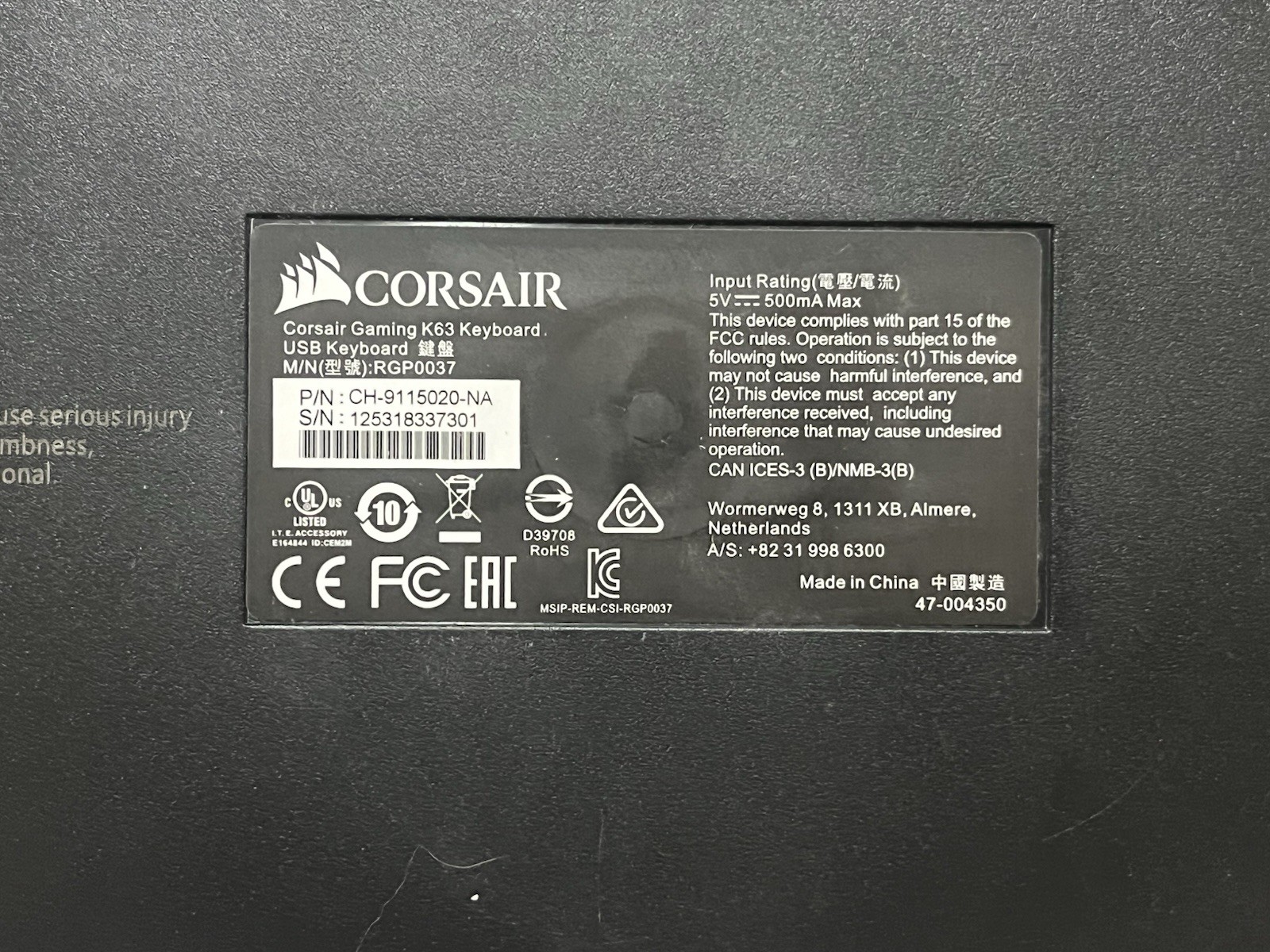 Corsair K63 Mechanical Gaming Keyboard Cherry MX Red Switches LED Backlit READ