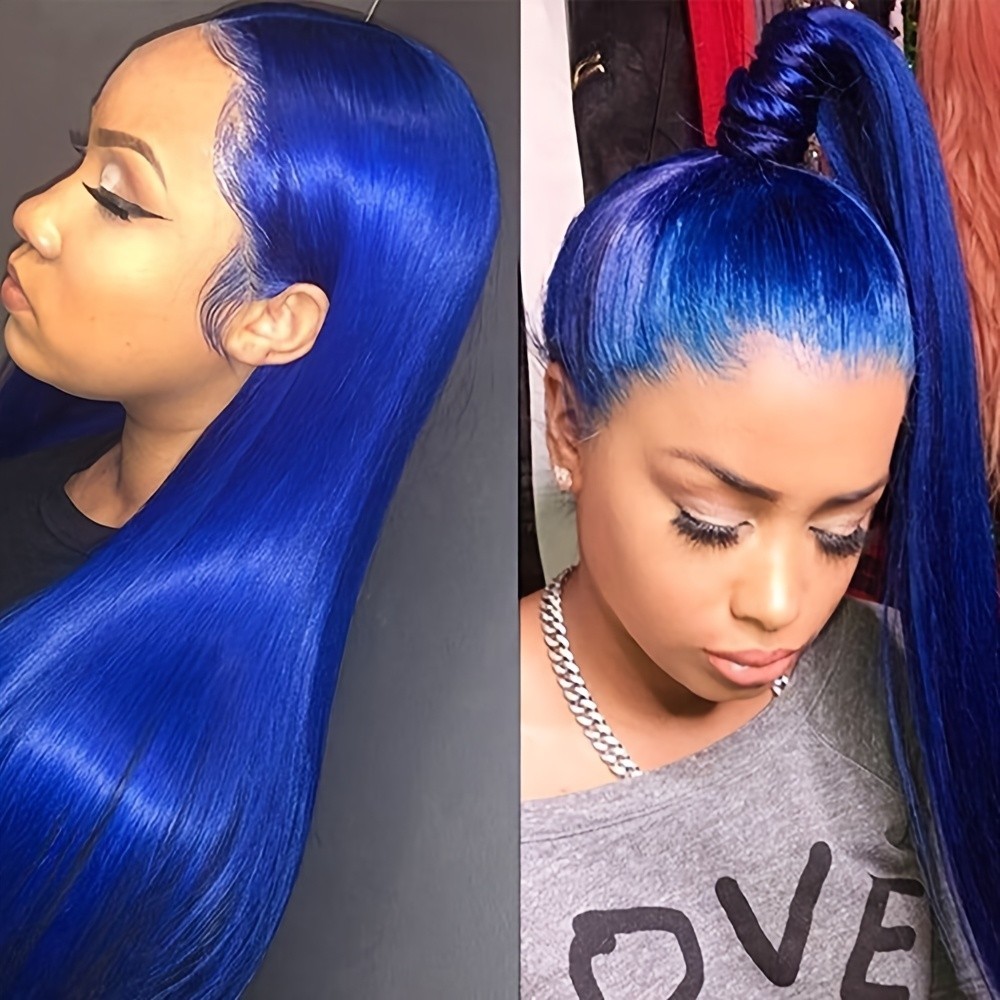 Glueless Lace Front Wigs Long Straight Blue Hair 13x4 Free Part Pre Plucked Soft
