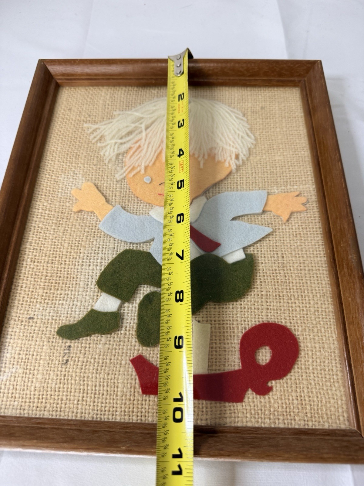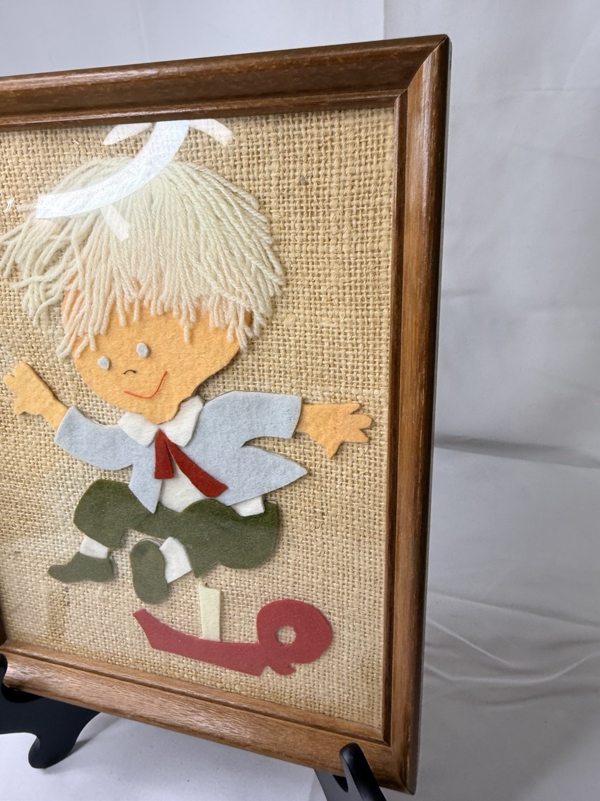 как выглядит VINTAGE CHILD NURSERY FELT ART WHIMSICAL BOY FRAMED фото