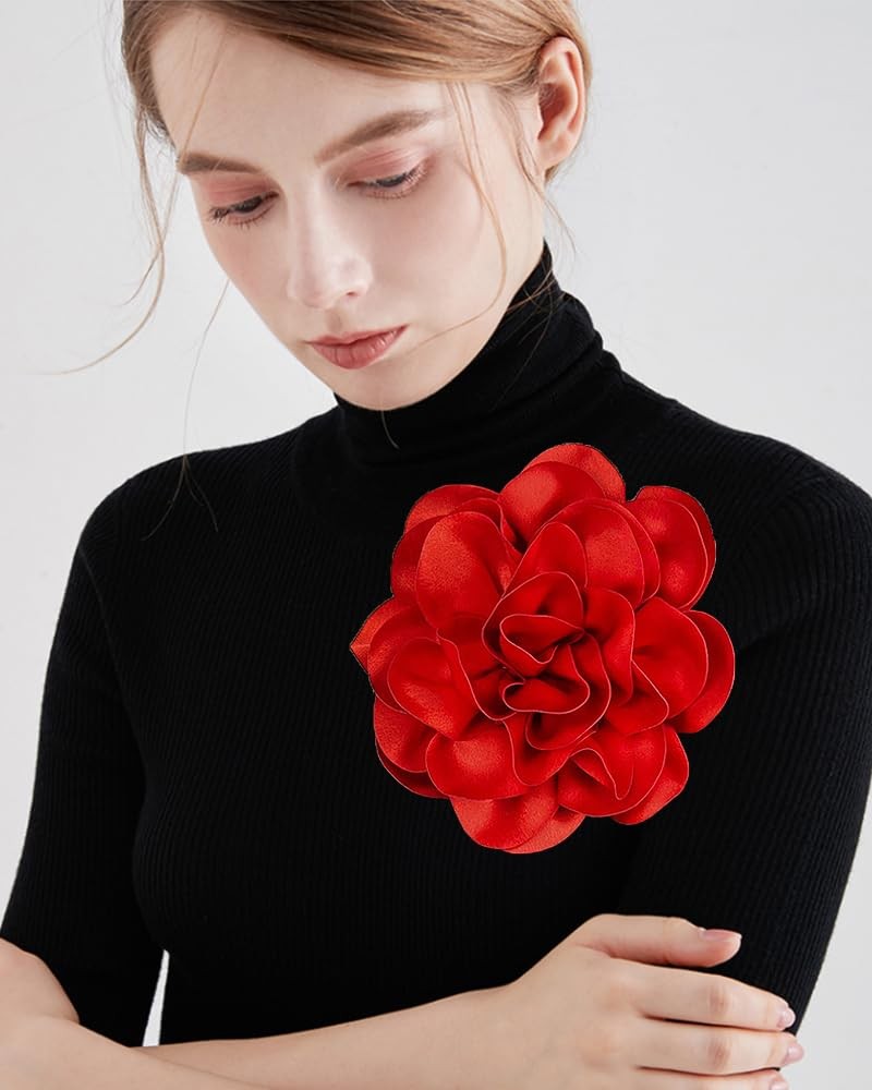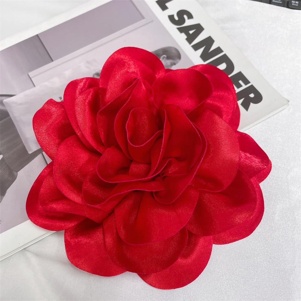 • Satin Fabric Rose Flower Extra Large Big Brooches Lapel Pins Silk Large, Red