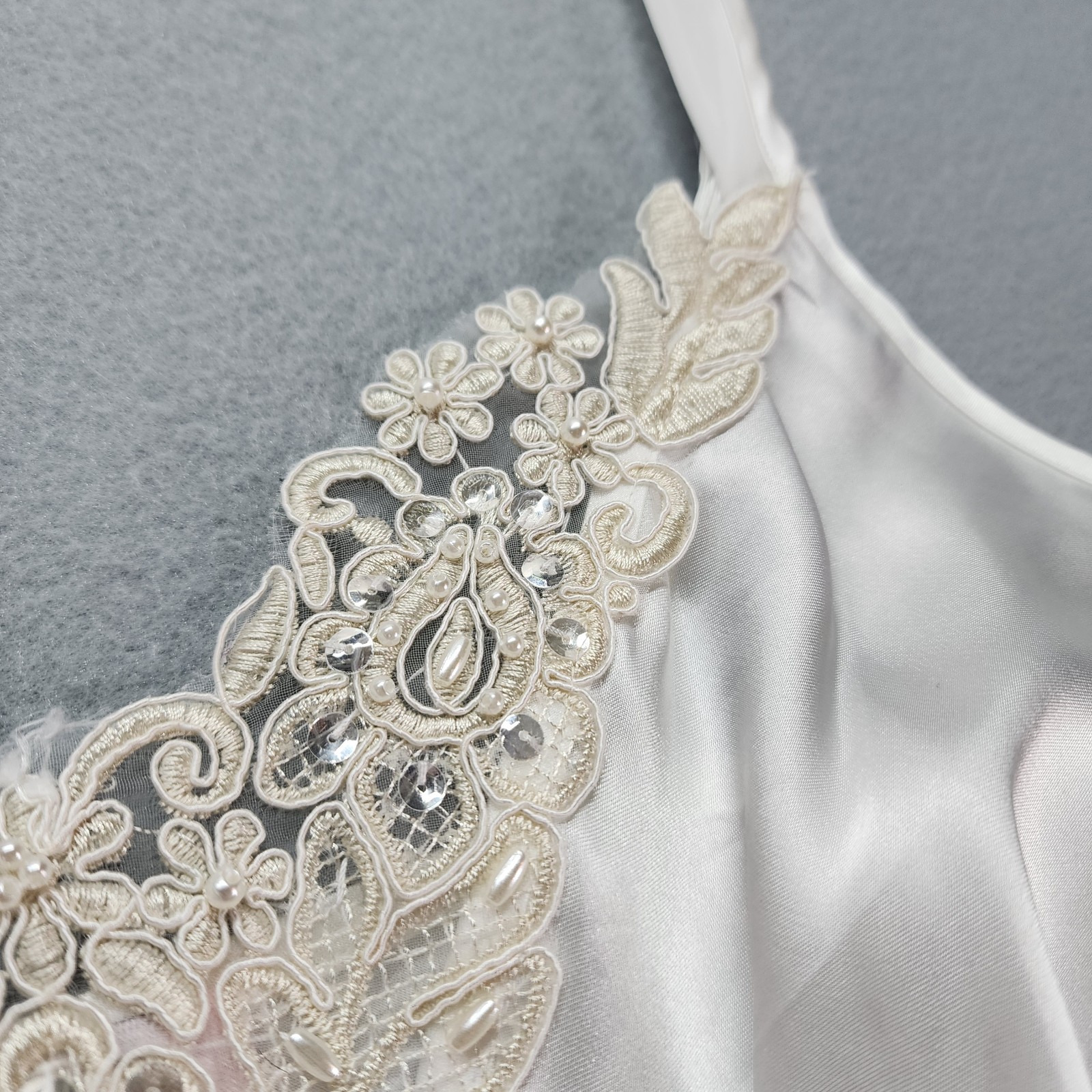 как выглядит Linea Donatella White Satin Slip Med Lingerie Bridal Dress Pearl Beaded фото