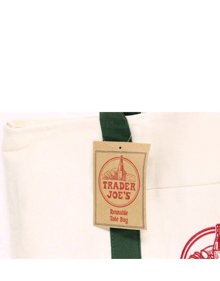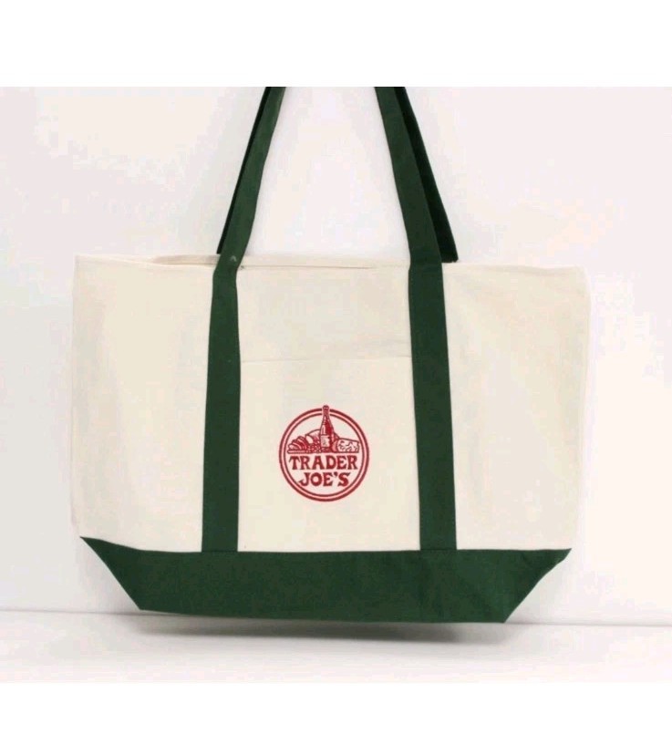 как выглядит Set of 3 Trader Joes Large Canvas Tote Reusable Bag 20x14x6" Green/White NEW фото