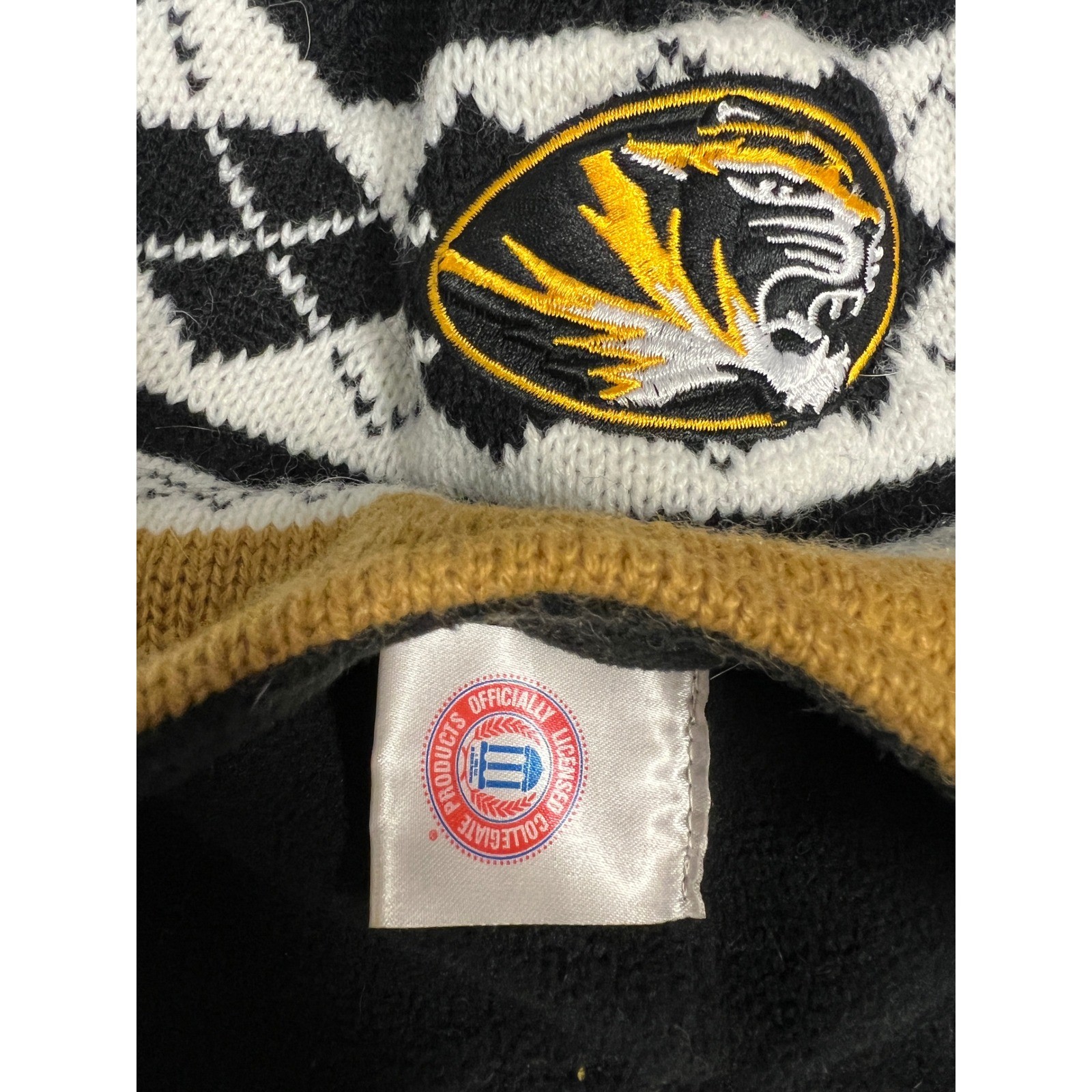 как выглядит Missouri Tigers Knit Winter Hat Officially Licensed Collegiate Ear Flaps Pom фото