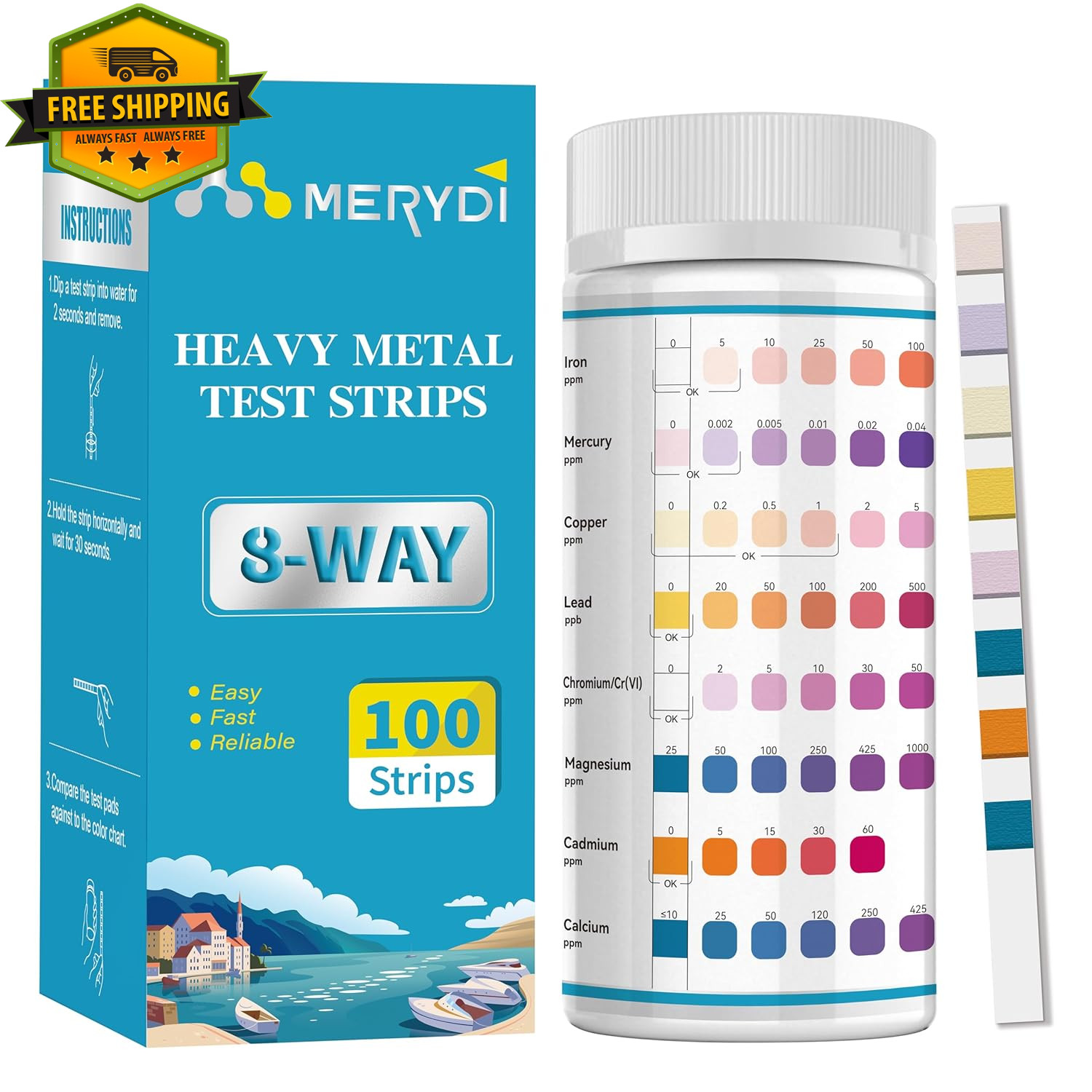 Water Test Strips 100ct Home Testing Kit for Iron Lead Heavy Metals
