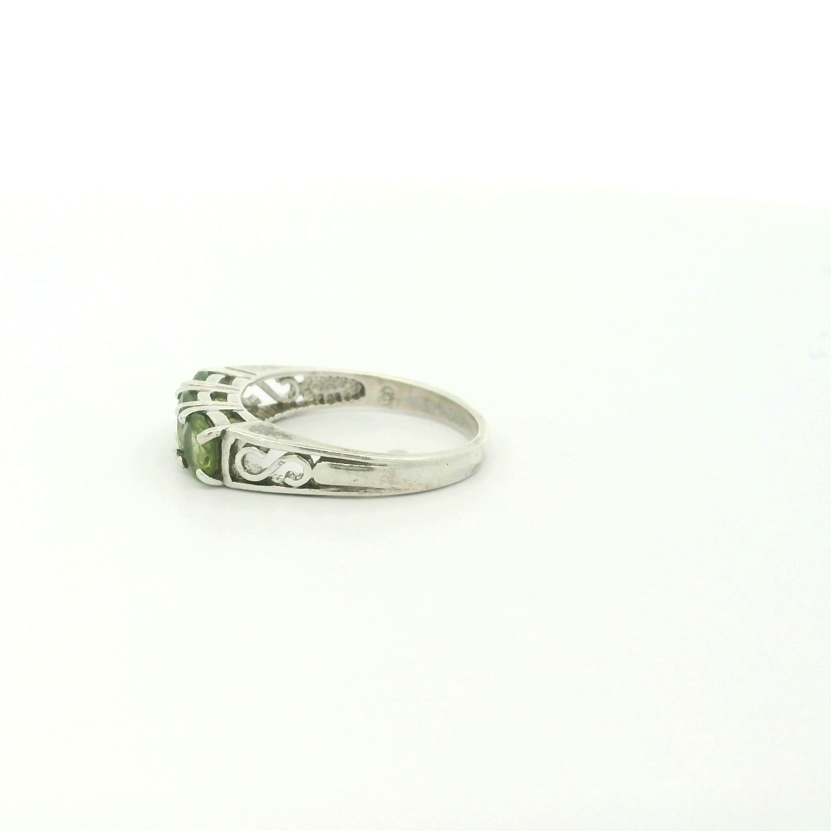 Sterling Silver Green Stone Band Ring - Size 7.5 C31026324