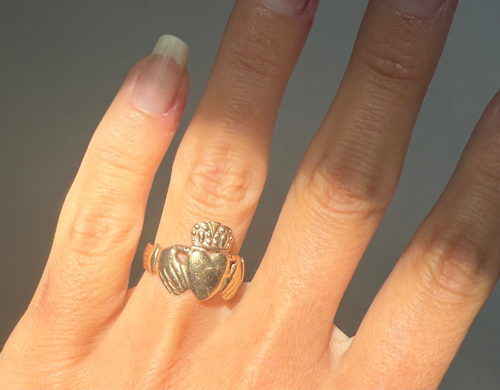Vintage 9K Yellow Gold Claddagh Ring. Made In Ireland. Size 7