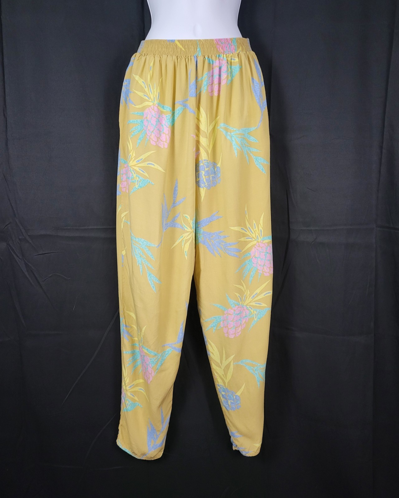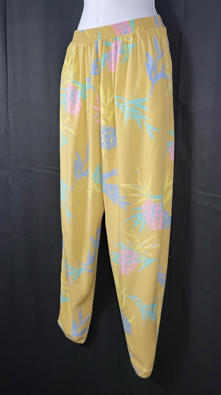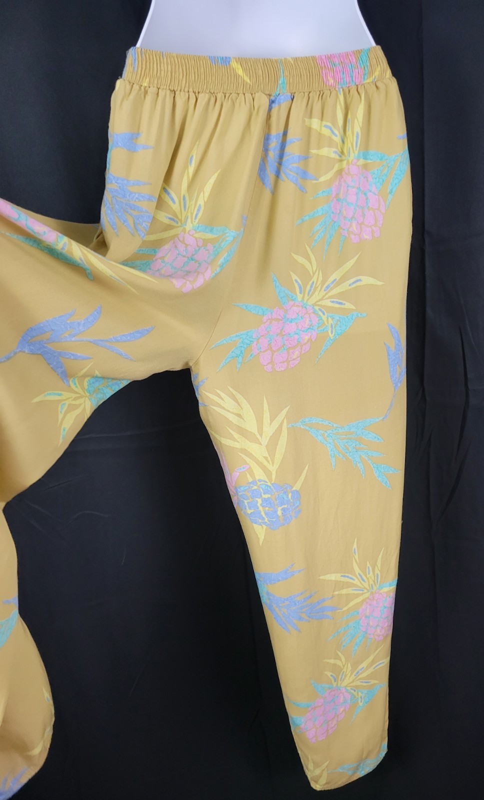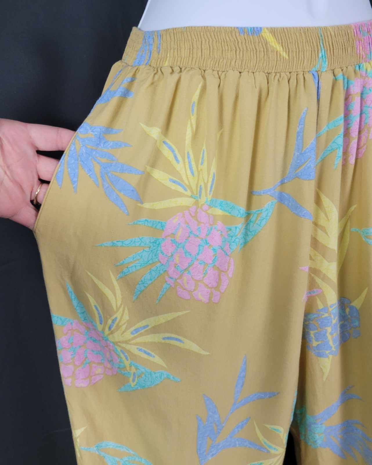 как выглядит Vintage Maui Connection Tan Hawaiian Pants w Pastel Leaves Size Large фото