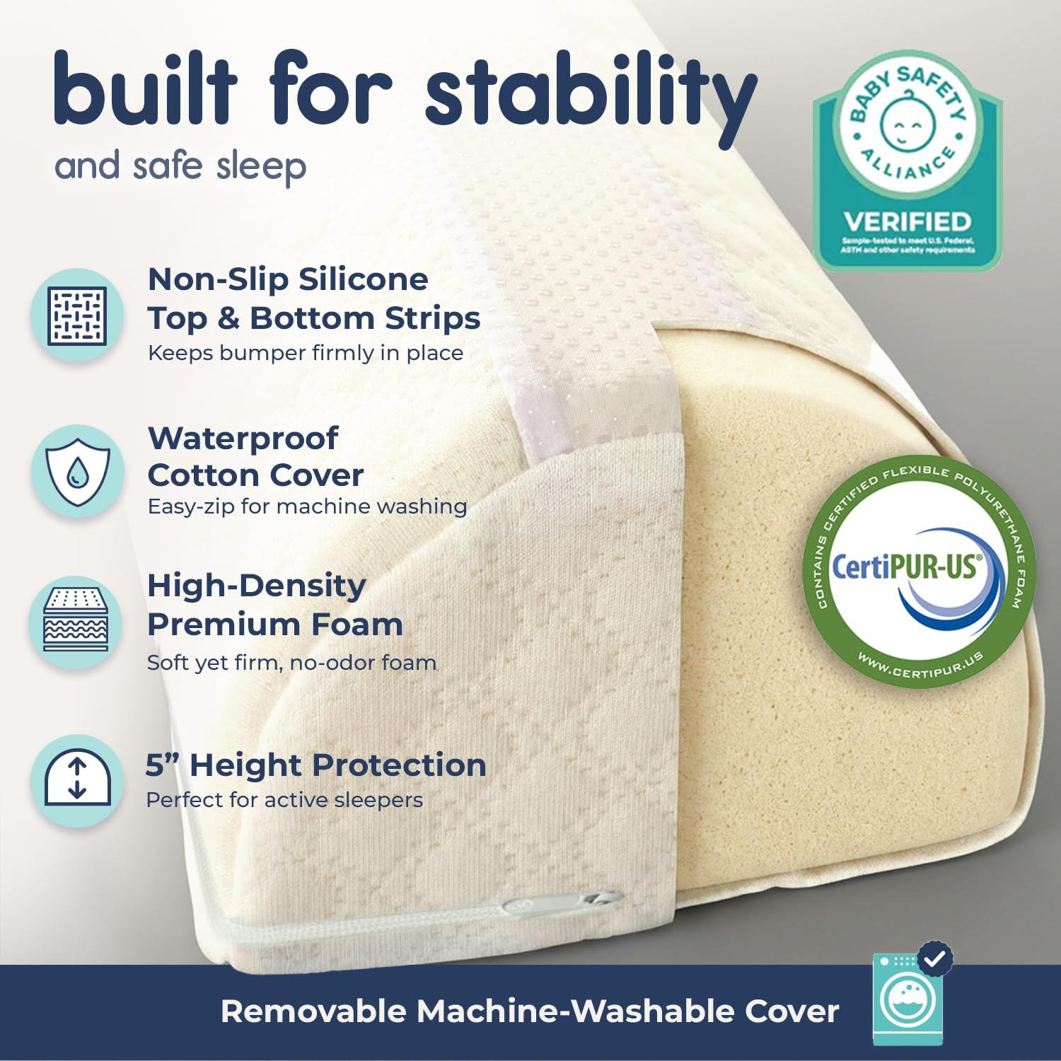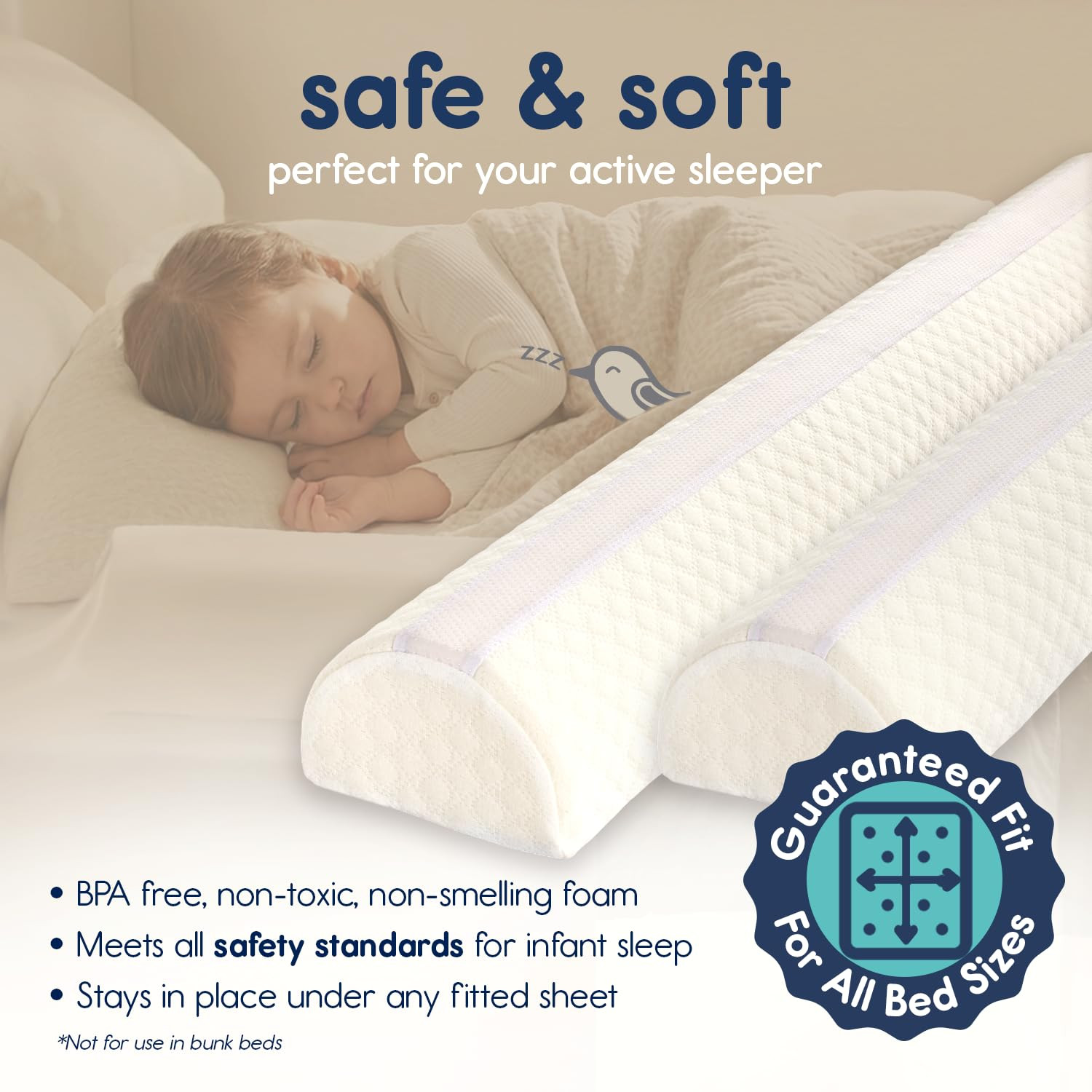 2-Pack Foam Bed Bumpers for Toddlers, Toddler Bed Rails W/ Water-Resistant Cov