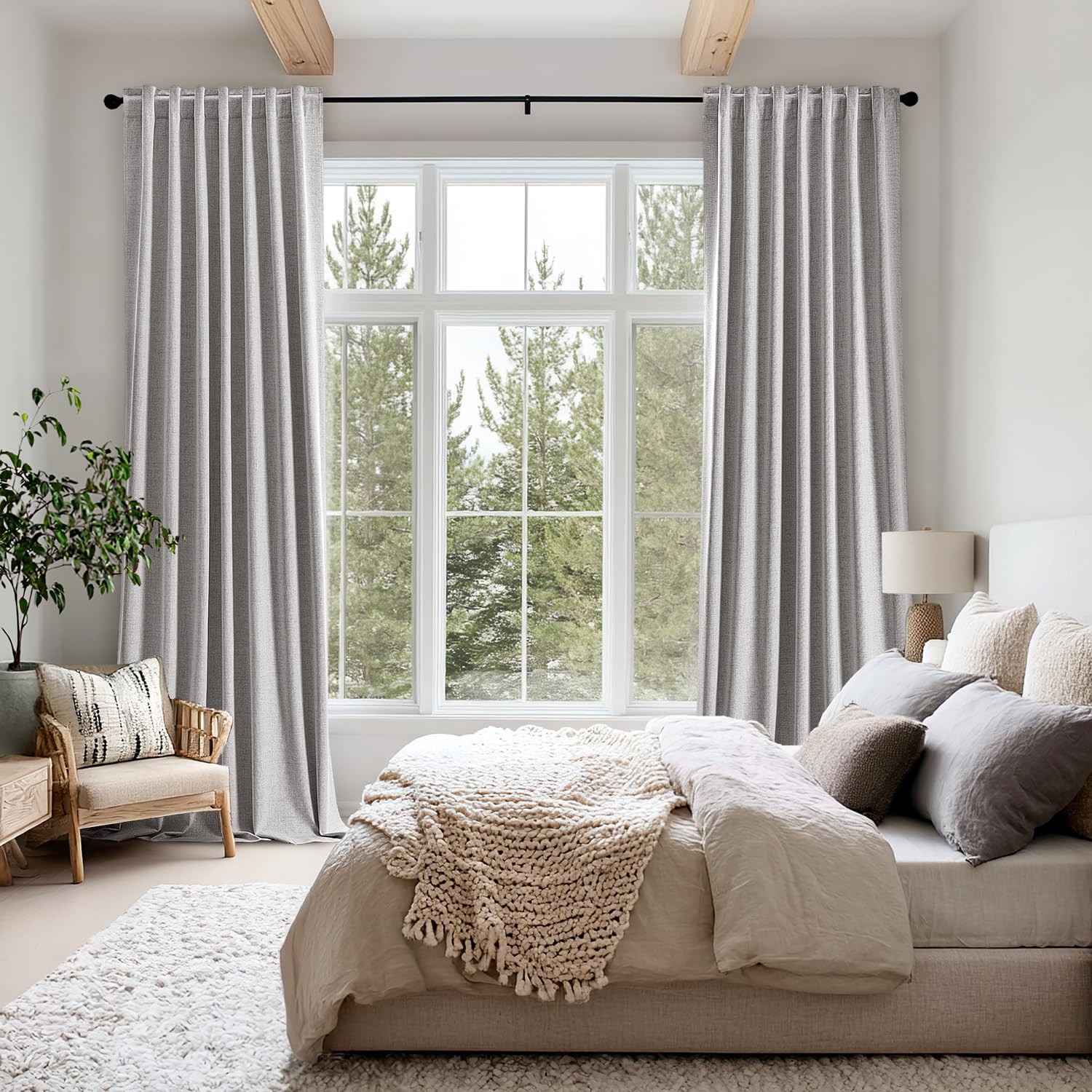 как выглядит MIULEE 100 Blackout Linen Curtains 42"W x 63"L Pack of 2 , Greyish White фото