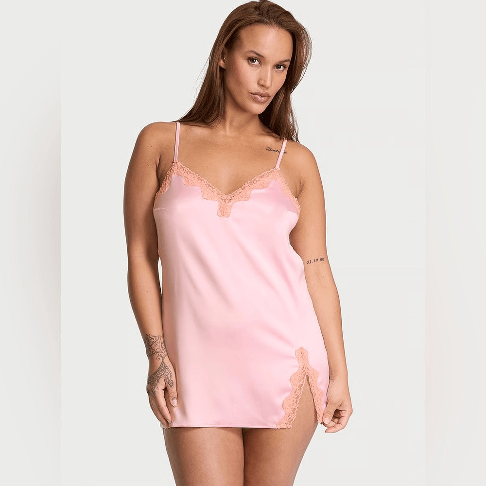 как выглядит NWT VICTORIAS SECRET Tease Satin Lace-Trim Mini Slip Dress фото