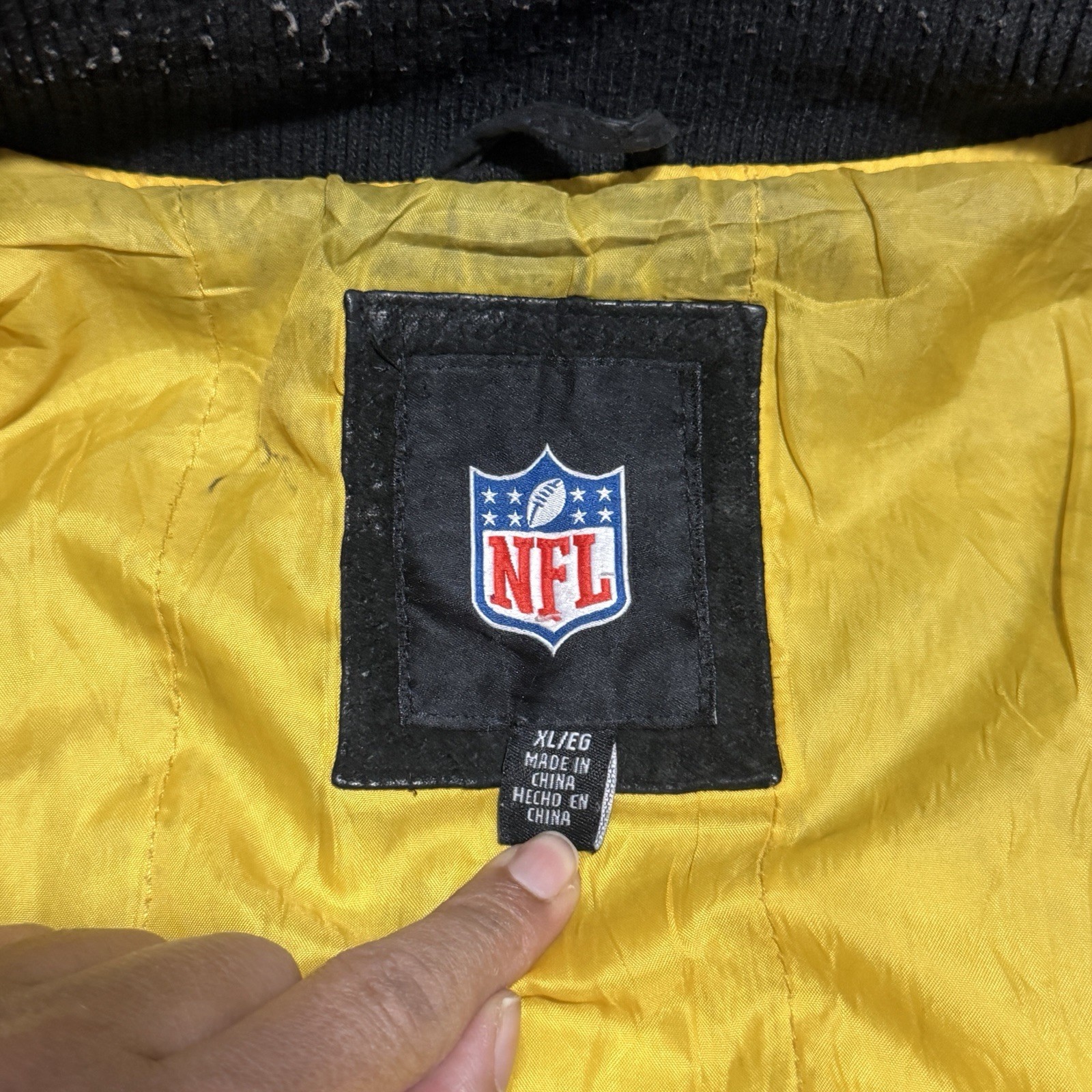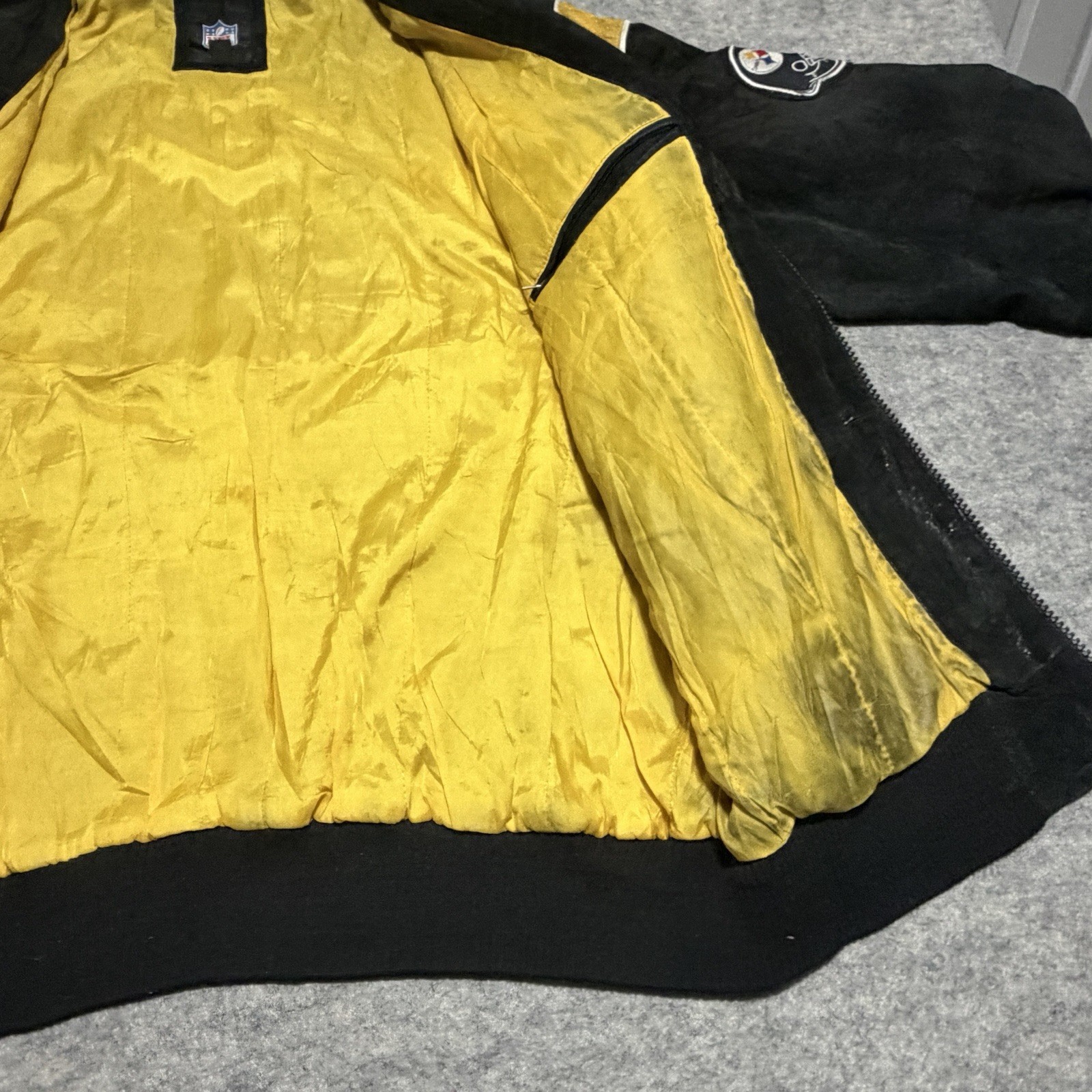 как выглядит Pittsburg Steelers NFL Suede Leather Jacket Mens XL Black GIII Apparel FLAWS фото