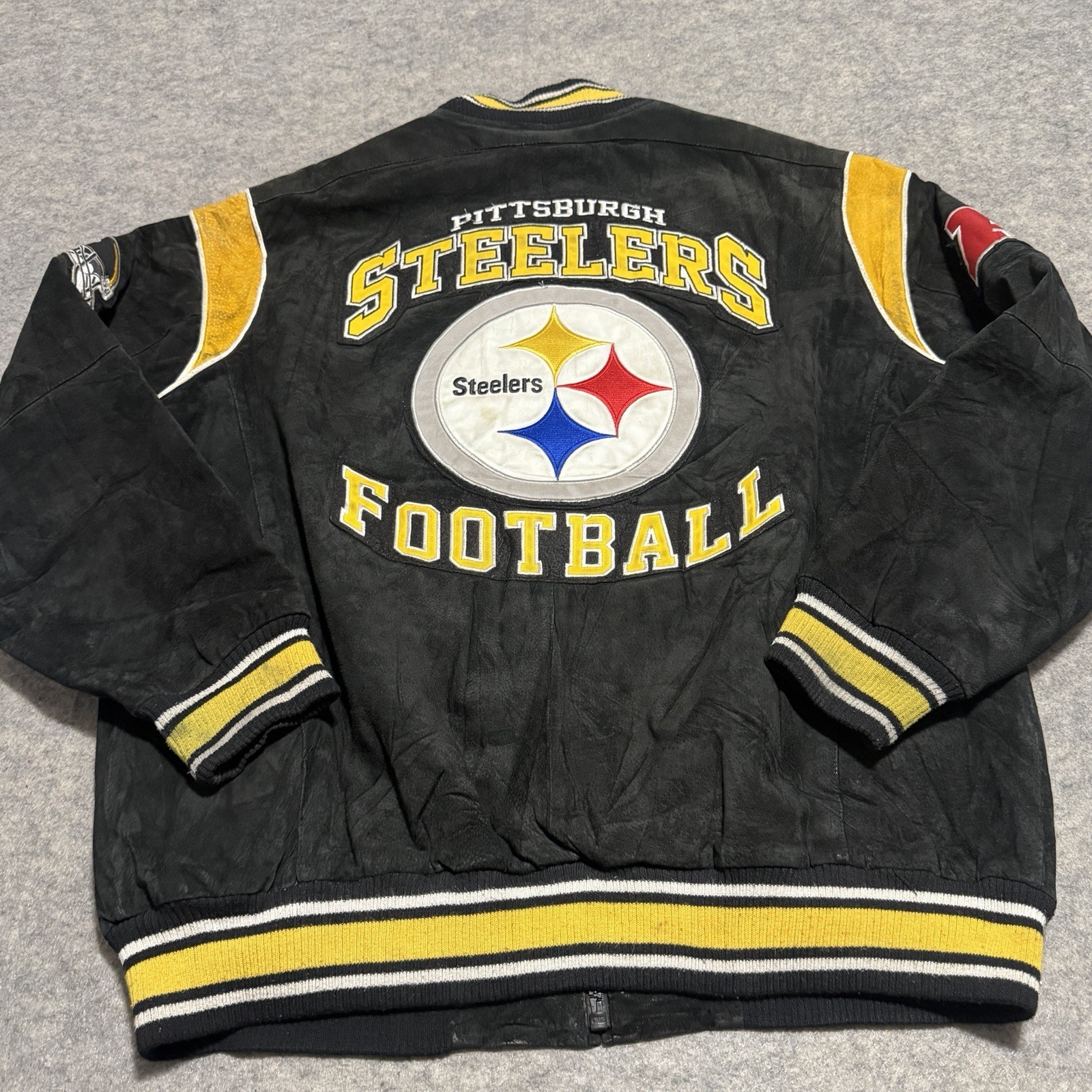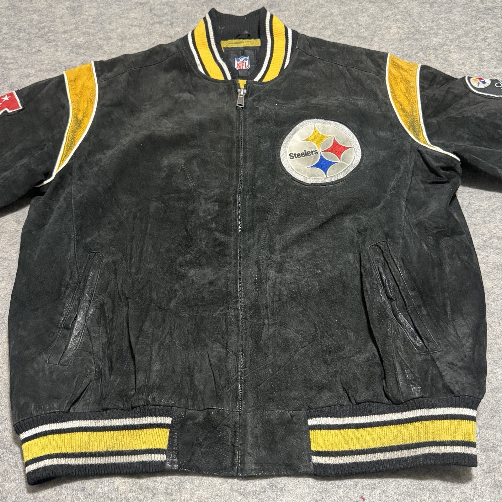 • Pittsburg Steelers NFL Suede Leather Jacket Mens XL Black GIII Apparel FLAWS