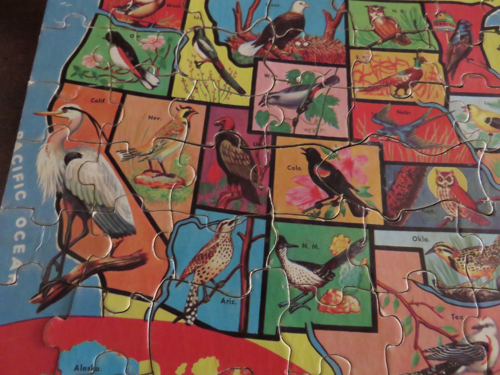 Birds of the Nation Map Puzzle Built Rite 100 Pieces Complete Vintage