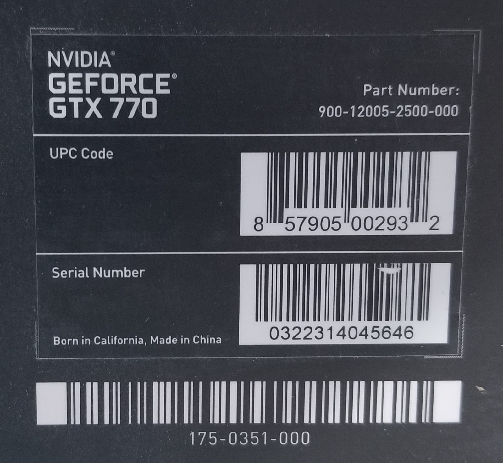 NVIDIA GeForce GTX 770 2GB GDDR5 Video Graphics Card GPU 699-12005-0000-210 D