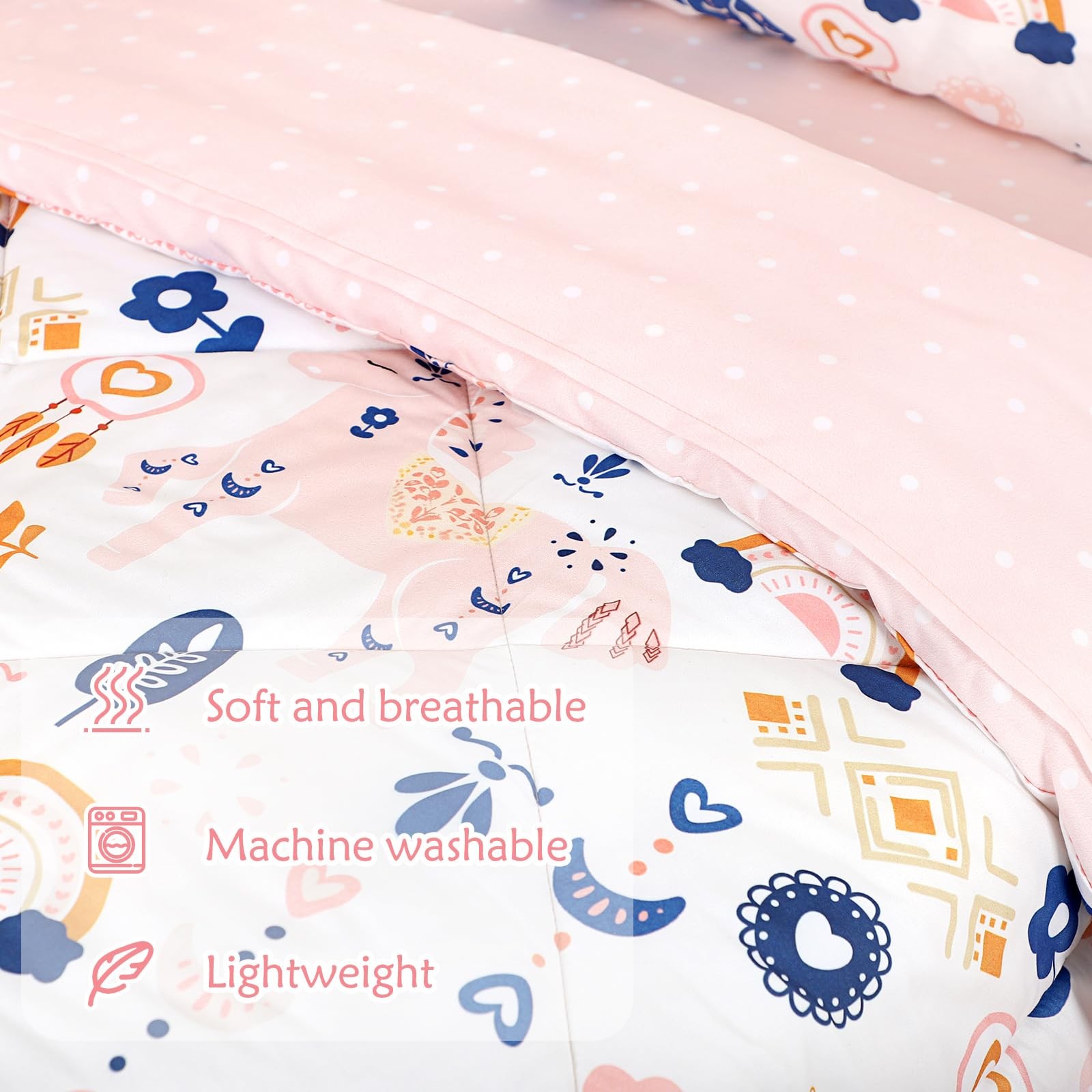 Bedding Set for Girls 4 Pieces Unicorn, Soft Breathable Comforter Set, Boho S...