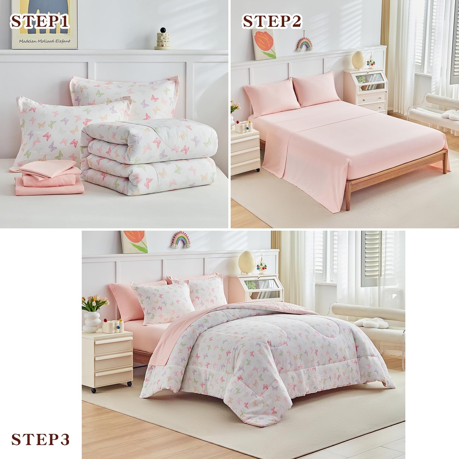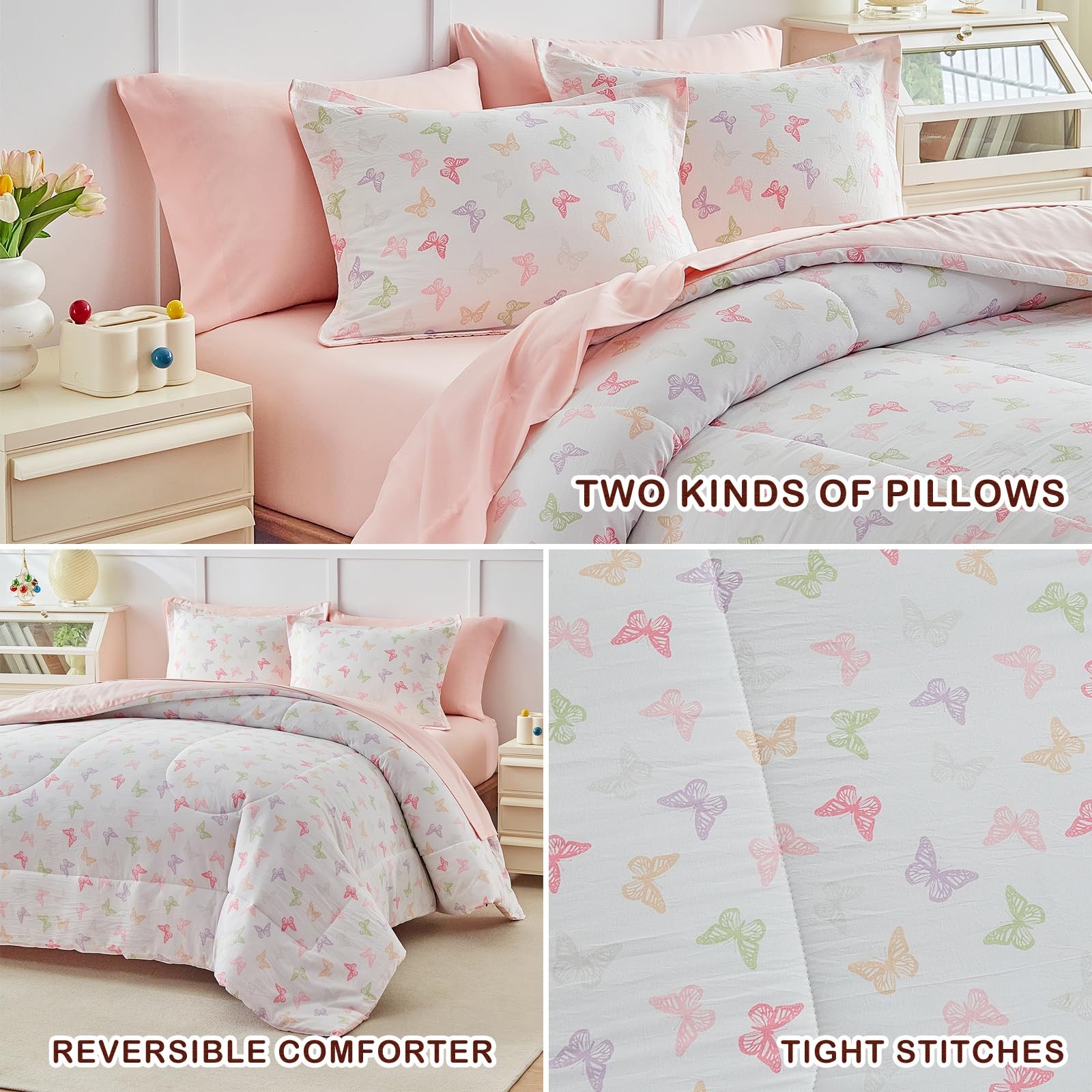 6pcs Bed in a Bag for Girls, Butterflies Pink Design, Twin Size Microfiber Co...