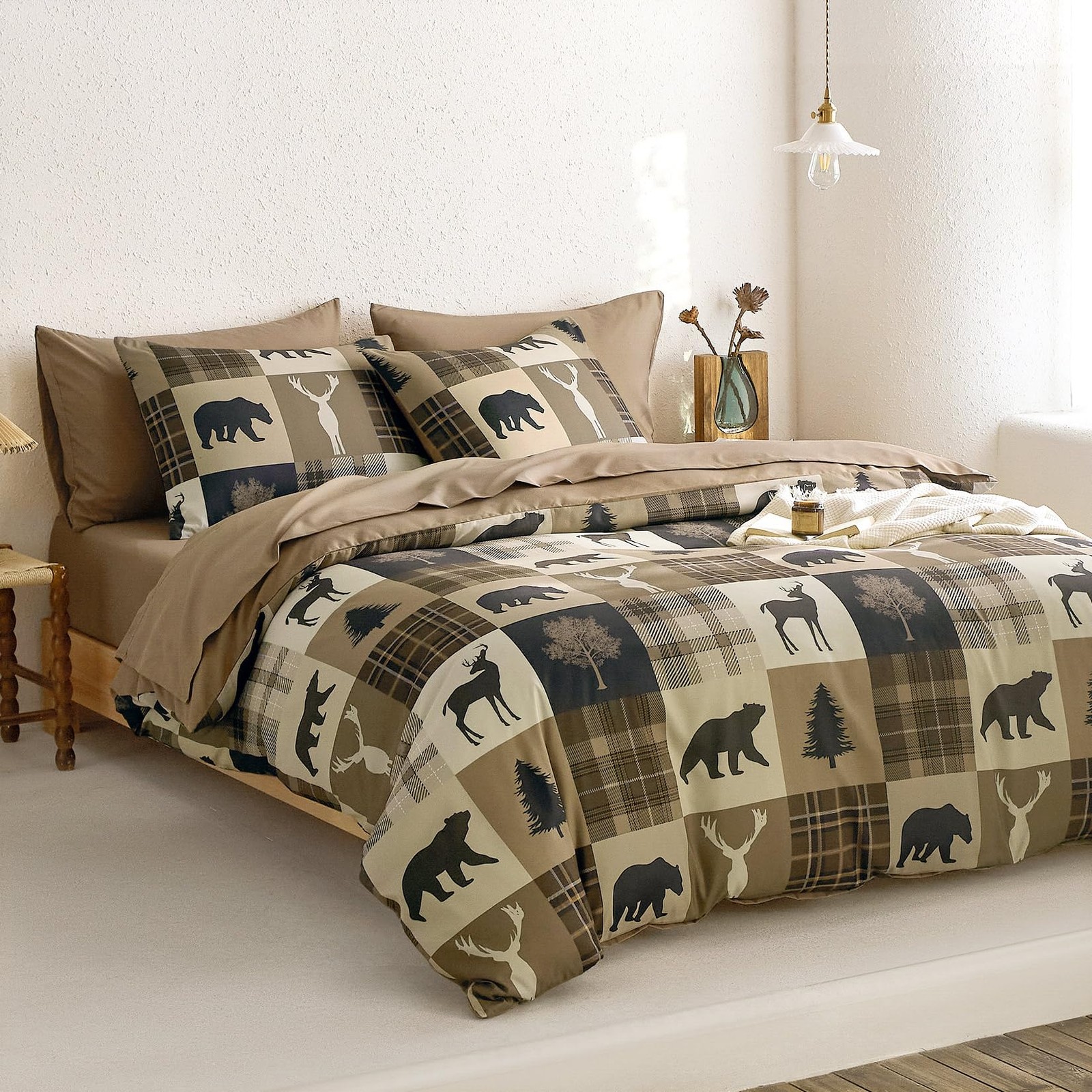 как выглядит - Rustic Comforter Set with Sheets, Cabin Lodge Christmas Bear Moose Deer Wil... фото