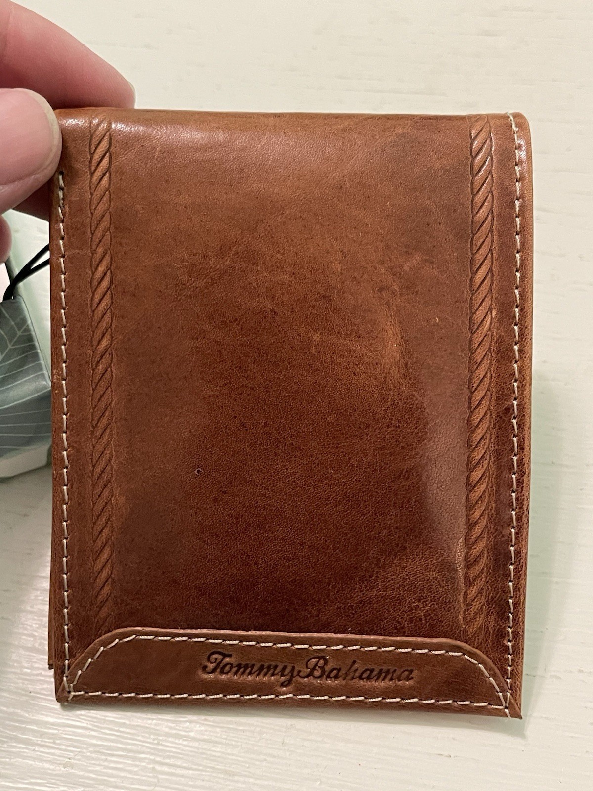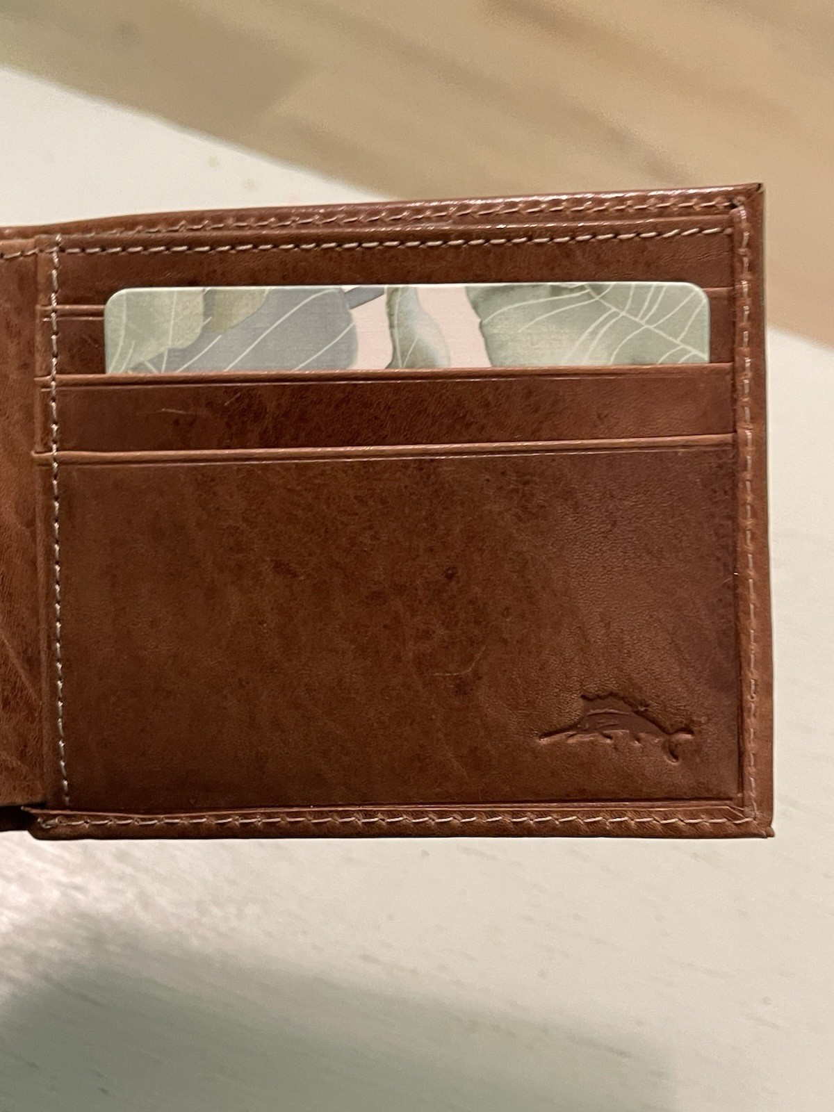 как выглядит Tommy Bahama Mens Bi Fold Tan Leather Wallet Card Case Brown Marlin Emboss NIB фото