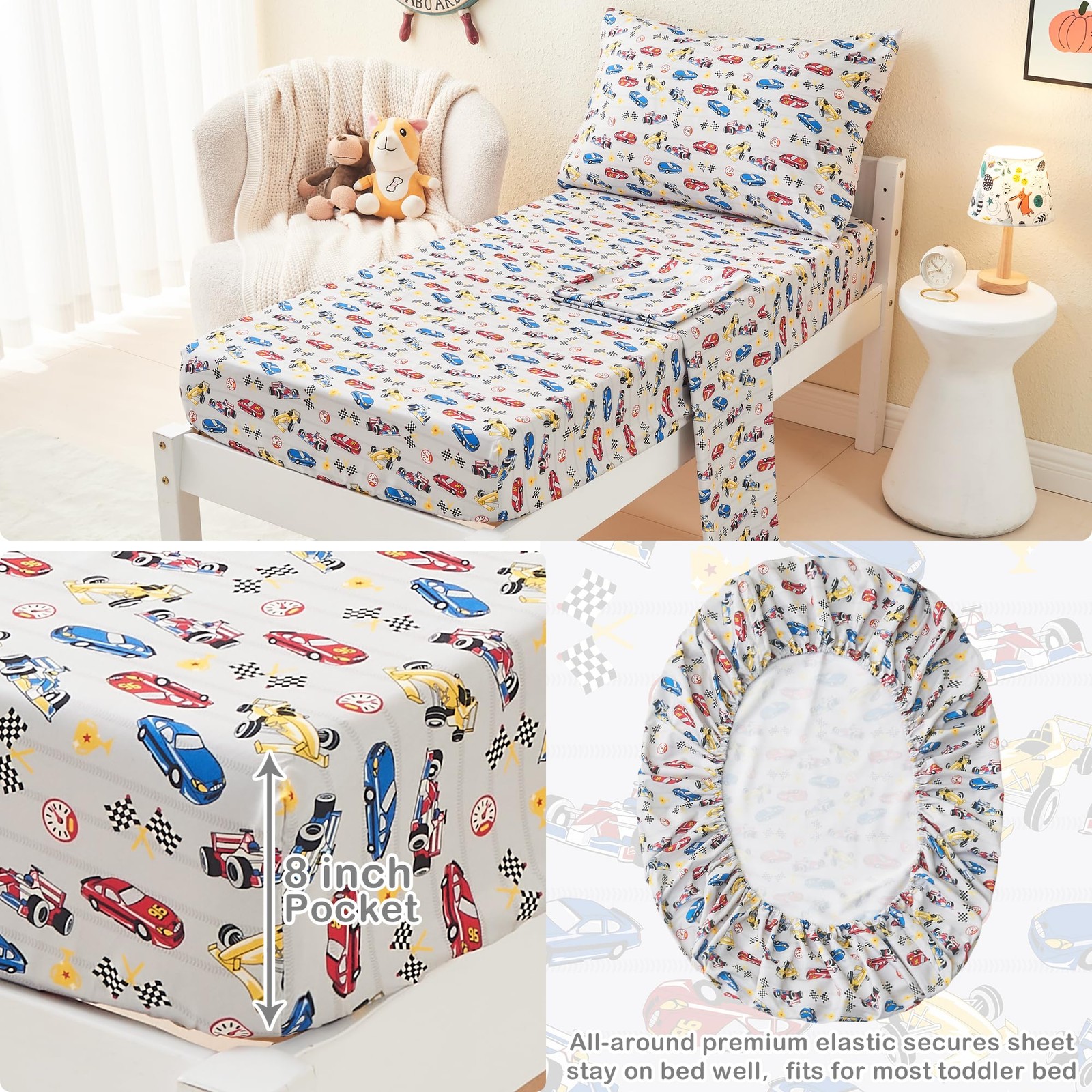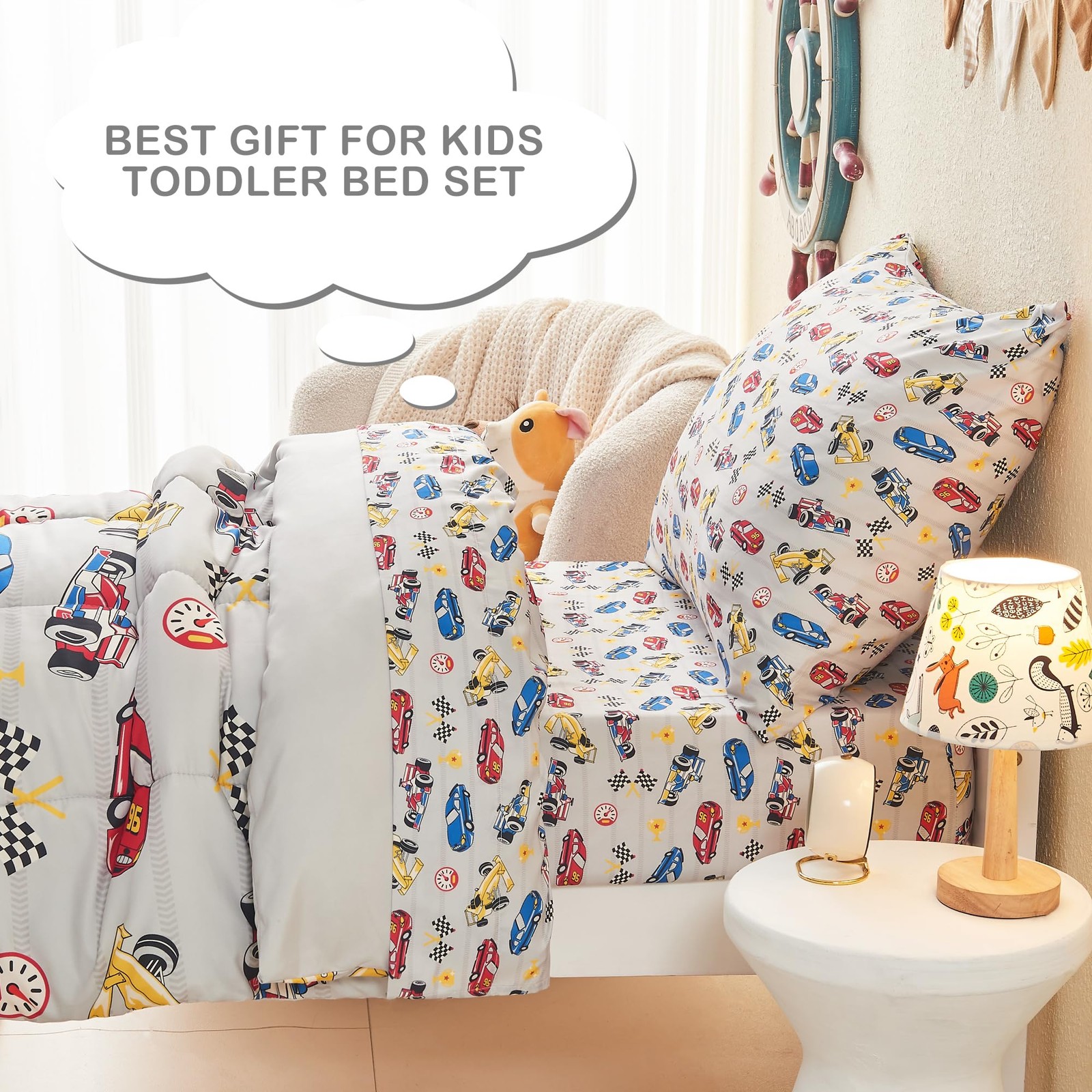 4 Pieces Toddler Bedding Set - Soft Race Cars Toddler Comforter Sets for Girl...