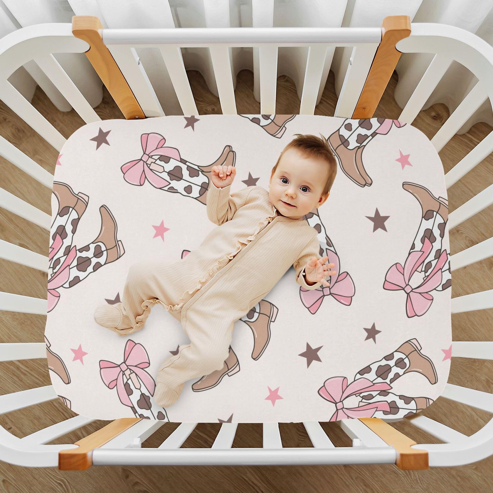 Bows Cowgirl Boots Western Crib Sheets Soft Breathable Fitted Baby Crib Sheet...
