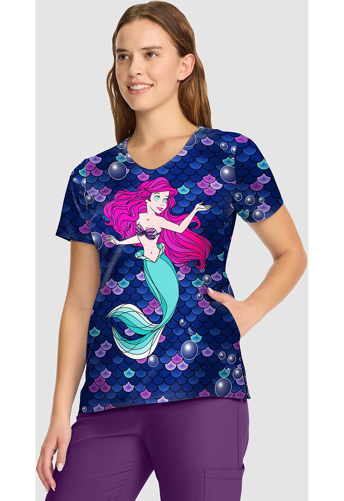 Ariel Cherokee Scrubs Tooniforms Disney Little Mermaid V Neck Top TF626 PRTO