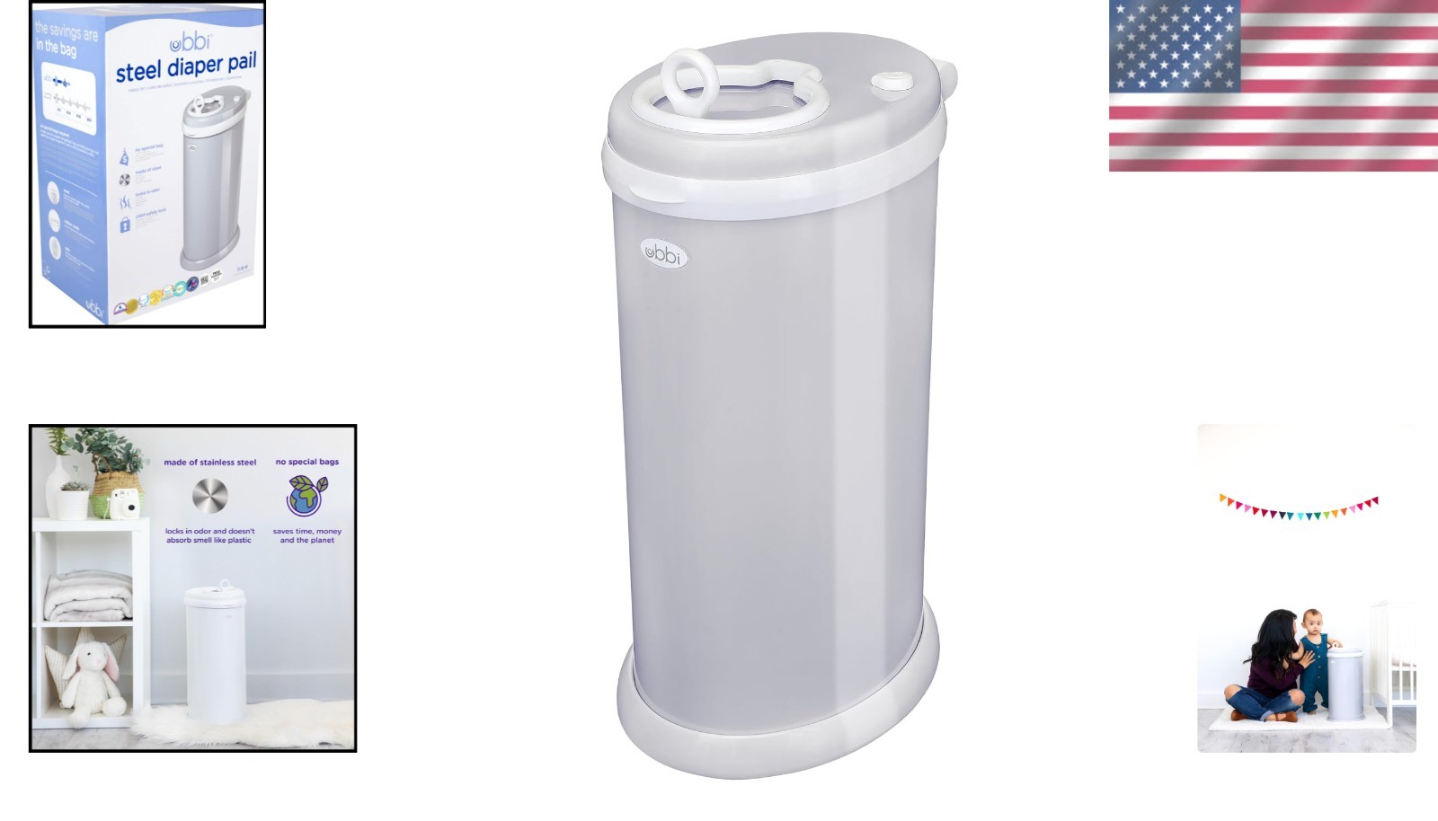 Sleek Steel Diaper Pail, No Special Bags Required, Gray