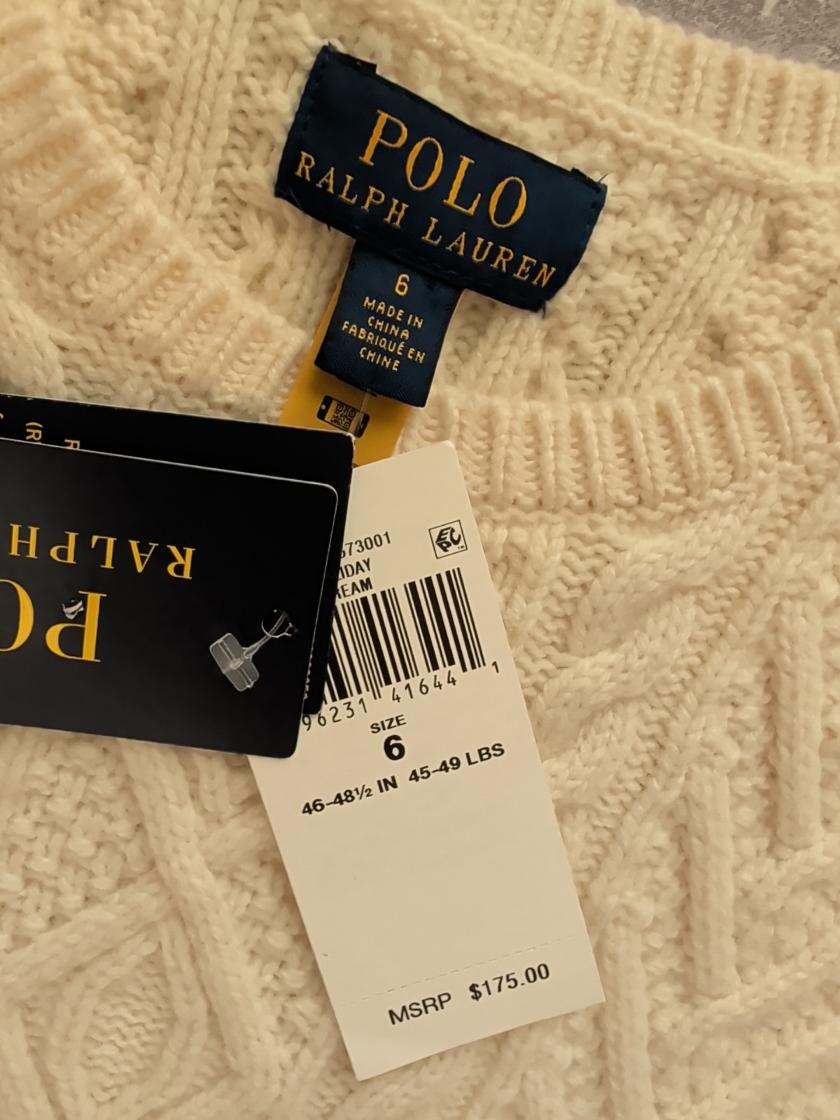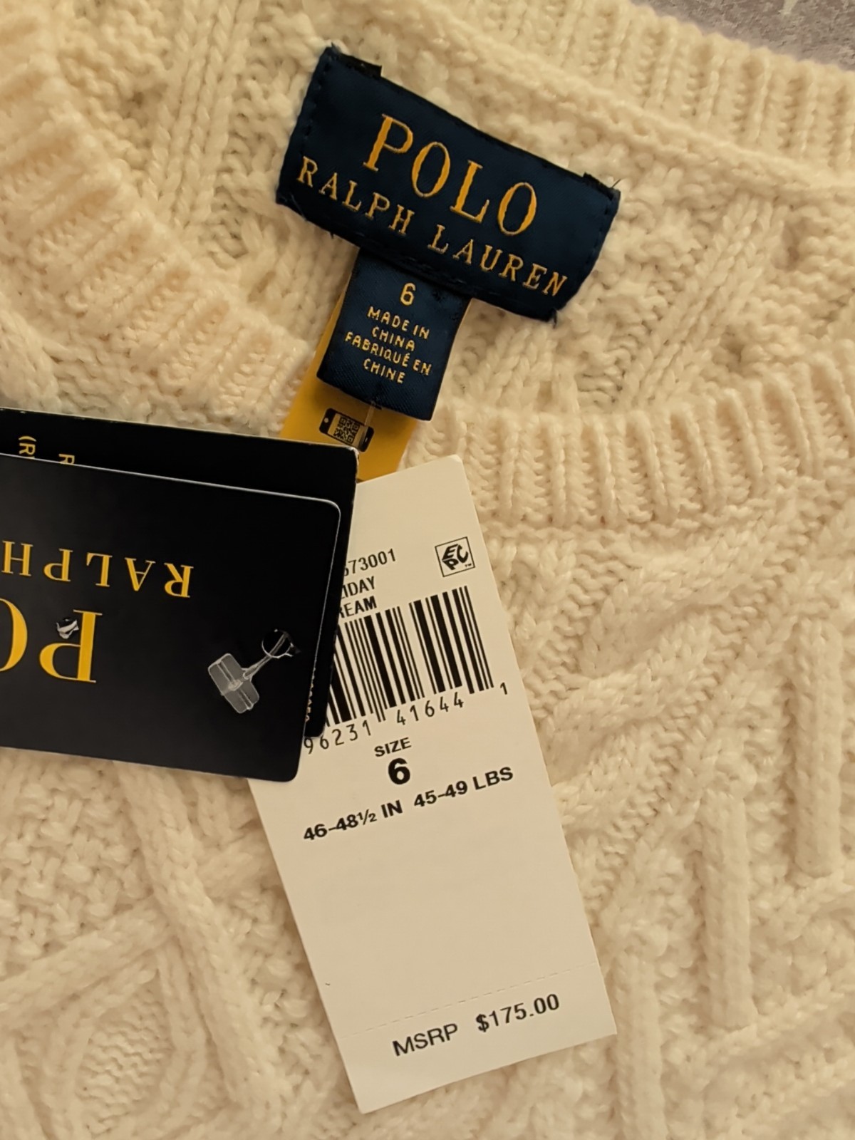 как выглядит Polo Ralph Lauren Cable Knit Sweater Boys Size 6 Cream Pullover 100 Cotton фото