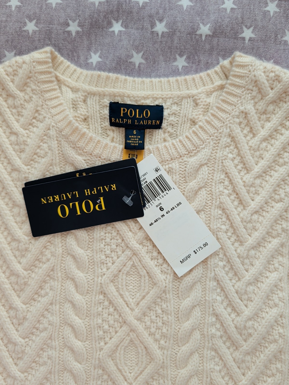 Polo Ralph Lauren Cable Knit Sweater Boys Size 6 Cream Pullover 100 Cotton