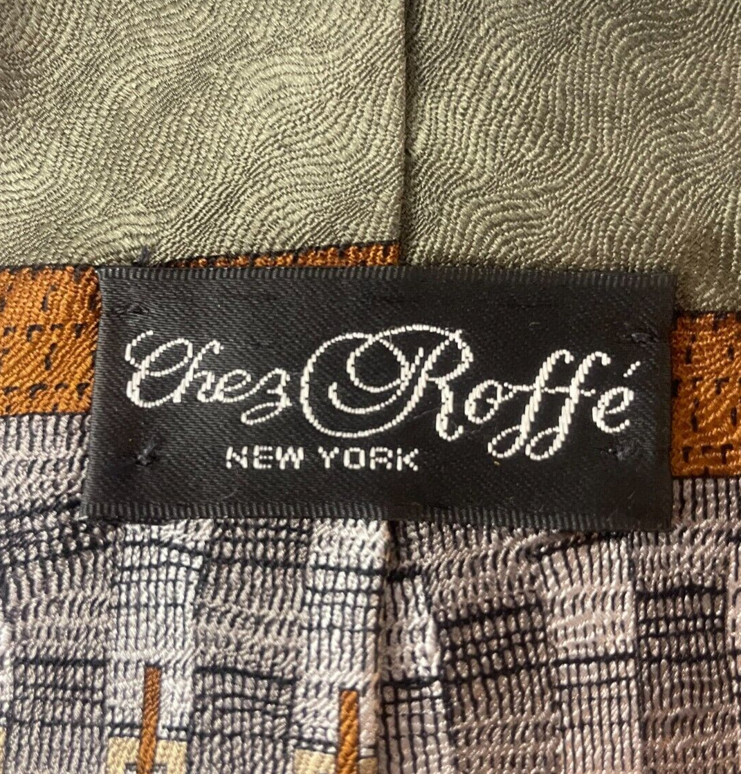 Chez Roffe Men's 100 Silk Men's Necktie Made in USA Brown Tan Red Earth Tones