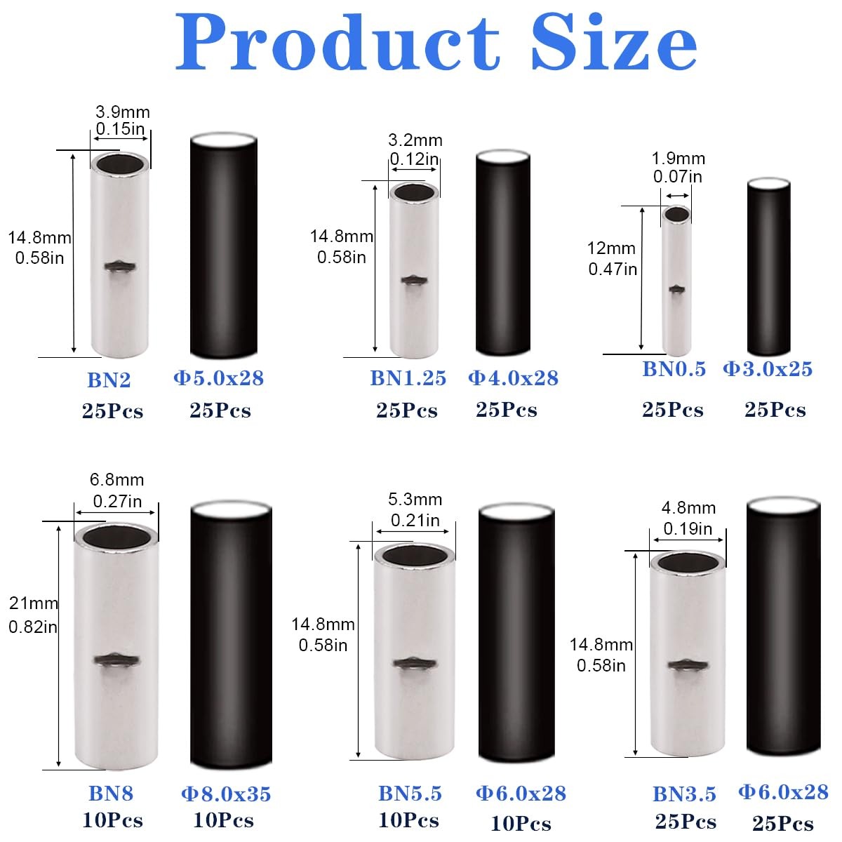 как выглядит 240 Pcs Non-Insulated Butt Connectors Assortment Kit,Seamless Uninsulated But... фото